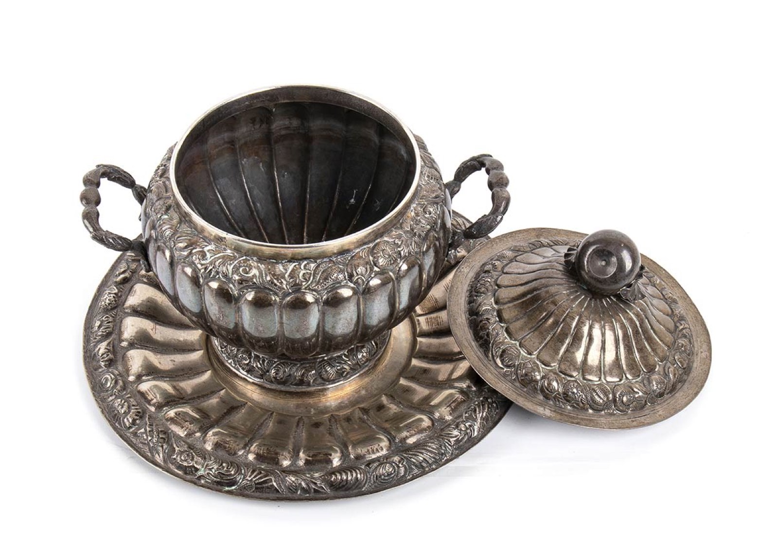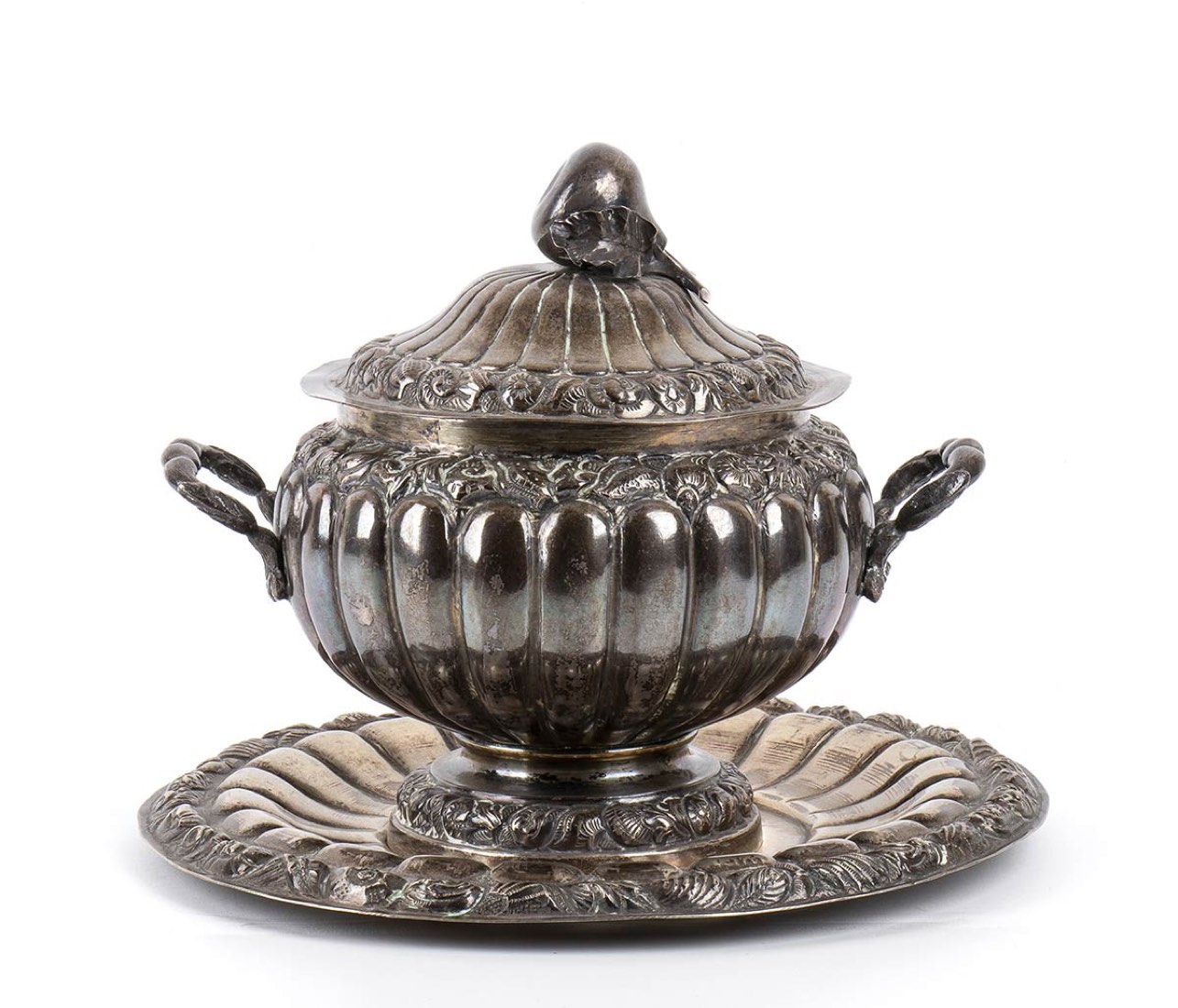 Zuppiera Italiana con piatto in argento - Napoli, 1830 circa