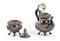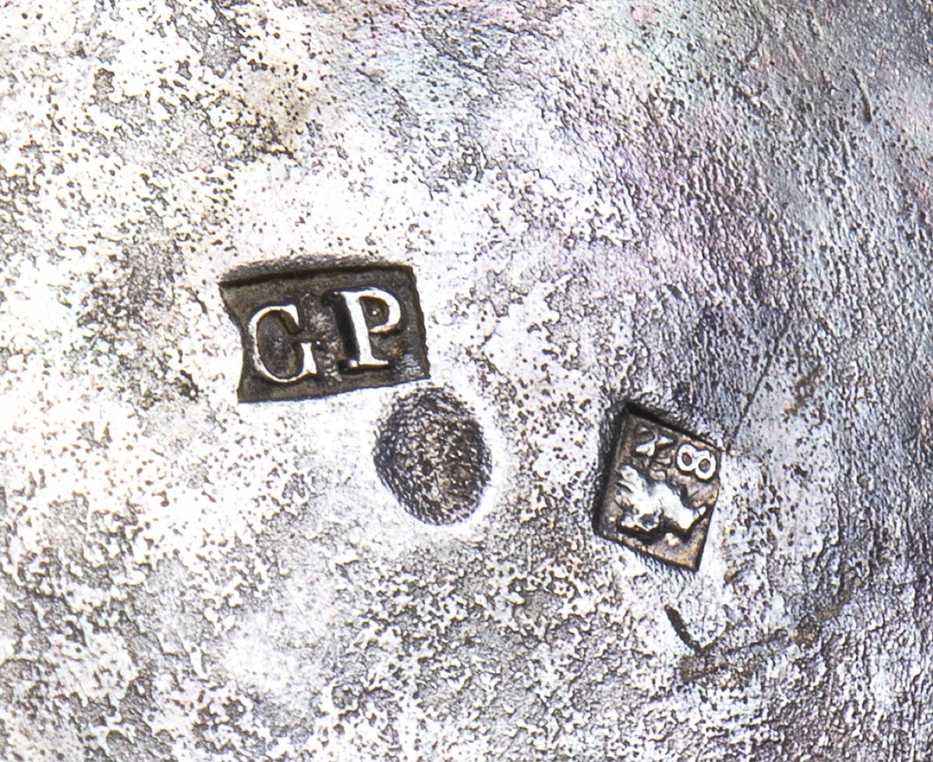 corpo piriforme su zampe ad artiglio, decorate con baccellature ed elementi a "cocciolette", coperchi con fastigi a pigna, manico in legno. Punzonate con il marchio in uso alla corporazione degli orefici di Napoli per l'argento al titolo di 833/1000, 1832-1872, argentiere Gennaro Pane (Rif. Elio e Corrado Catello, argenti napoletani pag. 145).
