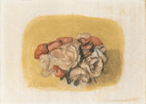 GIORGIO MORANDI 1890 - 1964 FIORI signed, oil on canvas, executed in 1957 firmato olio su tela cm 22x29,7 Eseguito nel 1957 PROVENANCE Collezione privata, Bologna Collezione privata, Roma Ivi acquistata dall'attuale proprietario nella prima metà degli anni Sessanta EXHIBITED Siena, Magazzini del Sale di Palazzo Pubblico, Morandi. I Fiori, 1990-91, n. 20, illustrato Brescia, Palazzo Martinengo, Morandi. Oggetti e stati d'animo, 1996-997, VIII, 7, illustrato LETTERATURA M. Pasquali, Morandi. Opere catalogate tra il 1985 e il 2000, Bologna 2000, pag. 74, n. 1957/3, illustrato a colori NOTA DEL CATALOGO "Morandi [gli oggetti] li ha collocati sul punto di trapasso tra un tempo che si sfalda ed uno che si va coagulando, tra il venir meno del correlativo oggettivo su cui aveva fondato la ricerca di tutta la vita e l'irrompere del monologo interiore, non come un torrente, ma come una mediazione concentrata." (F. Lorenzi, Nell'ultimo Morandi il mondo esala in un alito di luce, in 'Giornale di Brescia', Brescia, 25 marzo 1991)