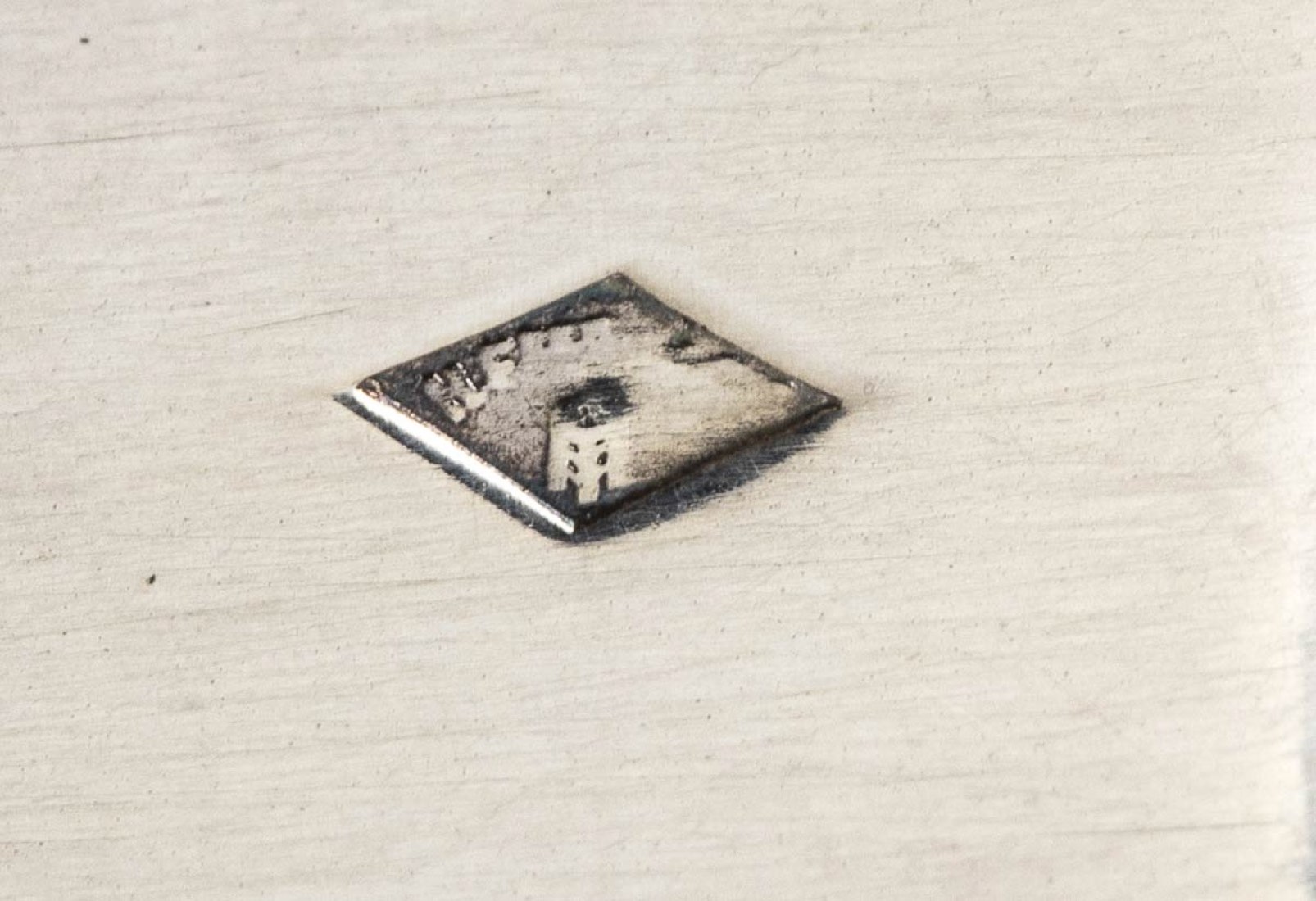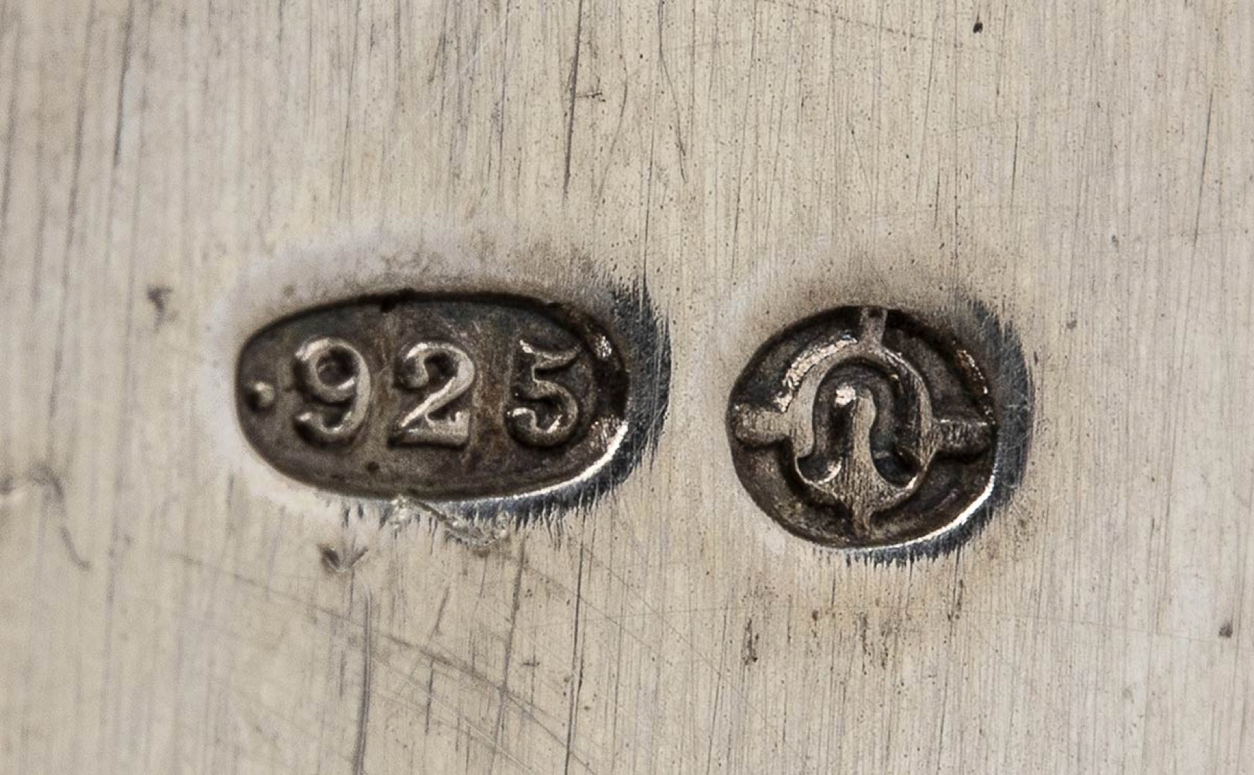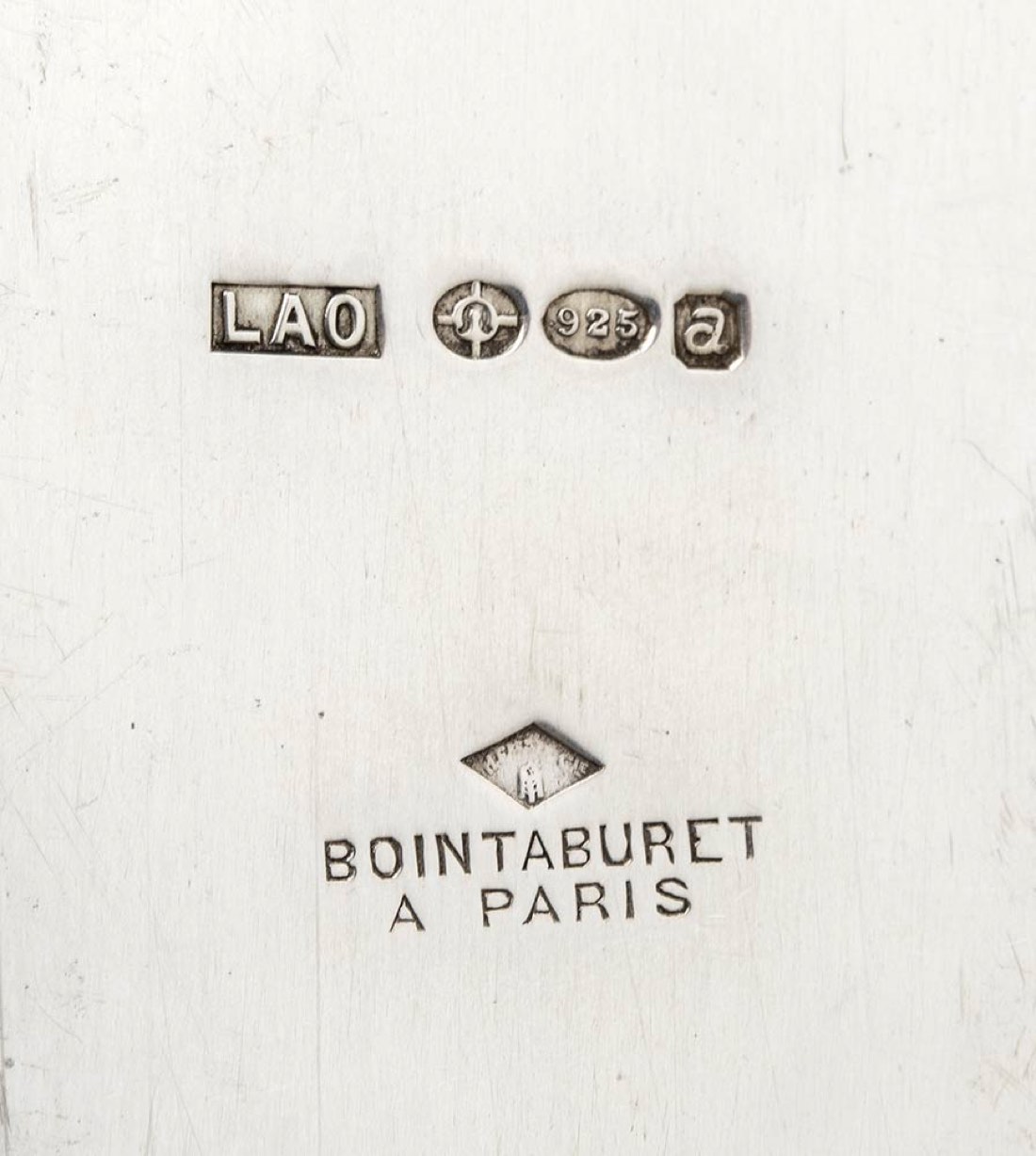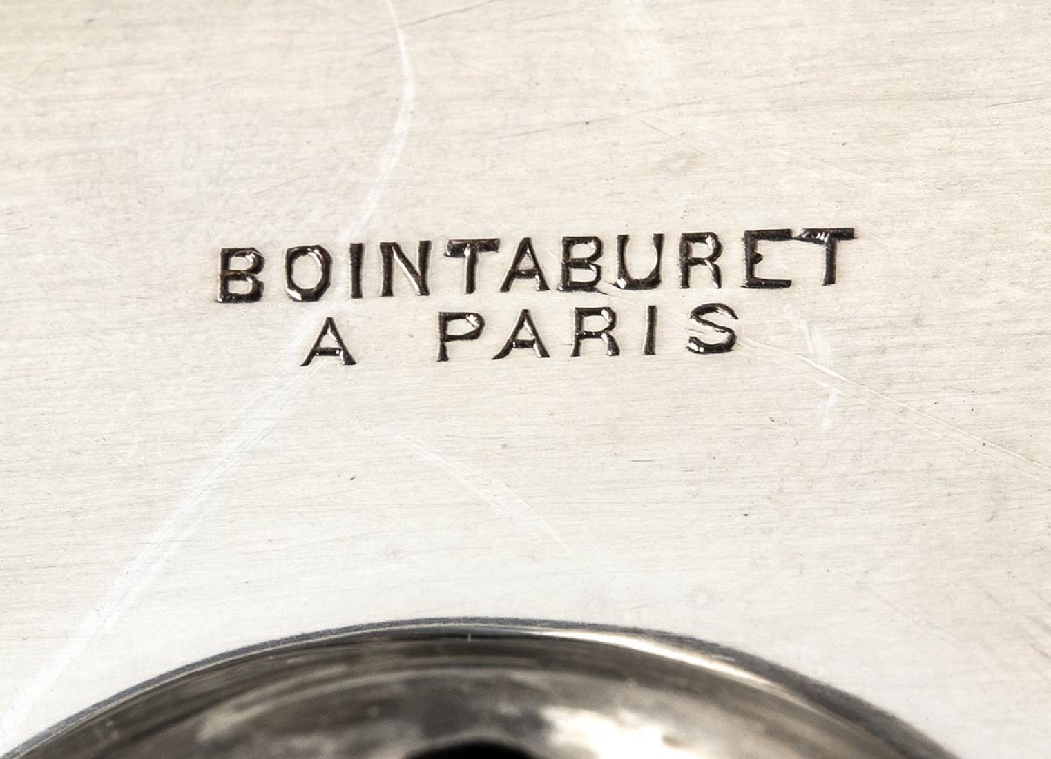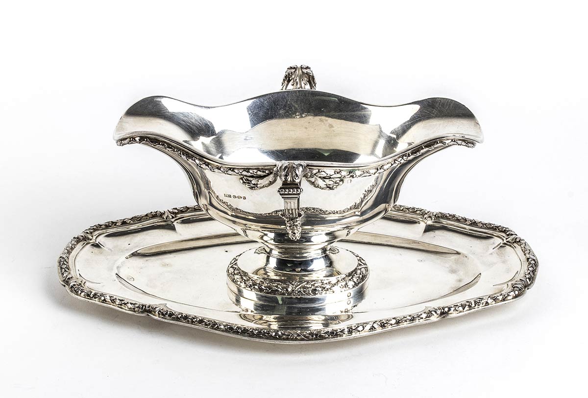 corpo a navicella su base ovale con bordi decorati a nastri e foglie d'acanto e manici laterali a motivi di ghirlanda. Punzonata con marchi francesi post 1838 in uso a Parigi per l'argento 950/1000, argentieri Georges Boin and Emile Taburet e con marchi di importazione a Londra nel 1956-1957. La fabbrica Boin-Taburet fu fondata nel 1873 dall'argentiere George Boin e da suo suocero, il fabbricante di gioielli Emile Taburet. Questi argentieri sono accreditati con la rinascita dell'argento in stile Luigi XV negli anni '80 del XIX secolo e vinsero una medaglia d'oro all'Esposizione Universale di Parigi 1889 per il suo monumentale lavoro storicista. Dimensioni 11,5 x 29,5 x 19,5 cm. Peso 1170 gr. Stato di conservazione: **** buono.