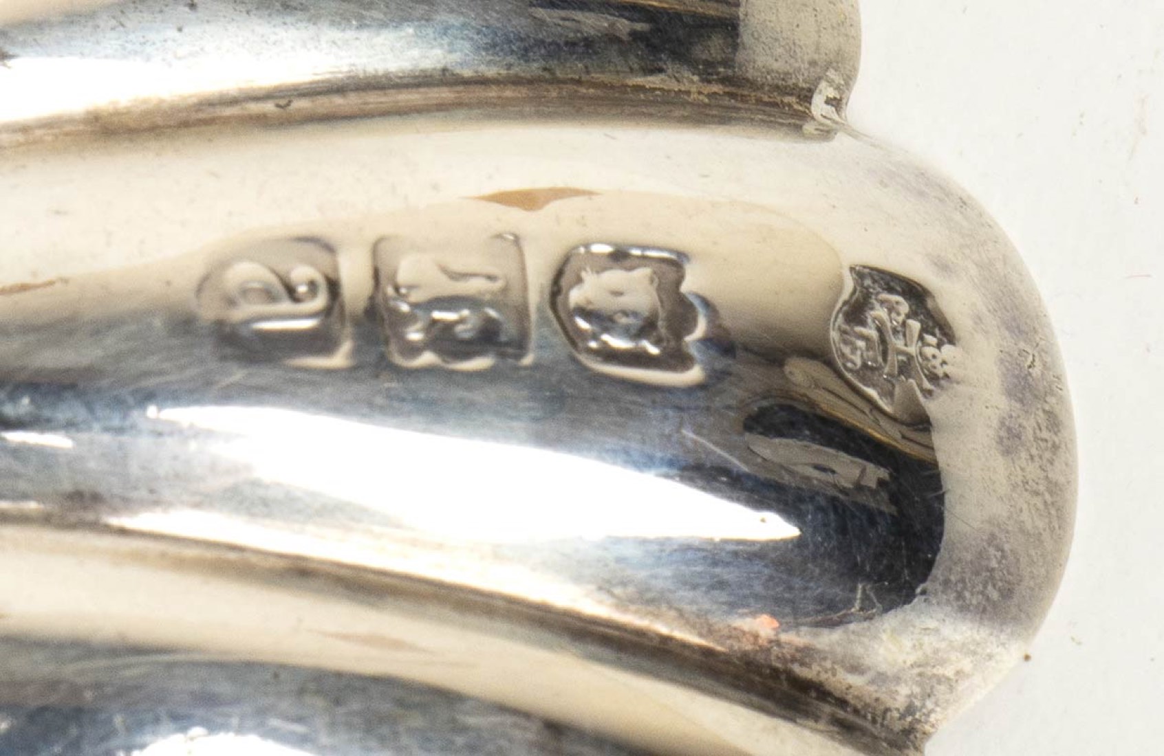 sulla presa dei manici sono raffigurati gli Apostoli. Argento 925/1000, serie completa di marchi Birmingham 1896, argentiere William Hutton & sons Ltd (Rif. Jackson's p. 70; Culme vol.1 p. 247; Culme vol.2 p. 321).