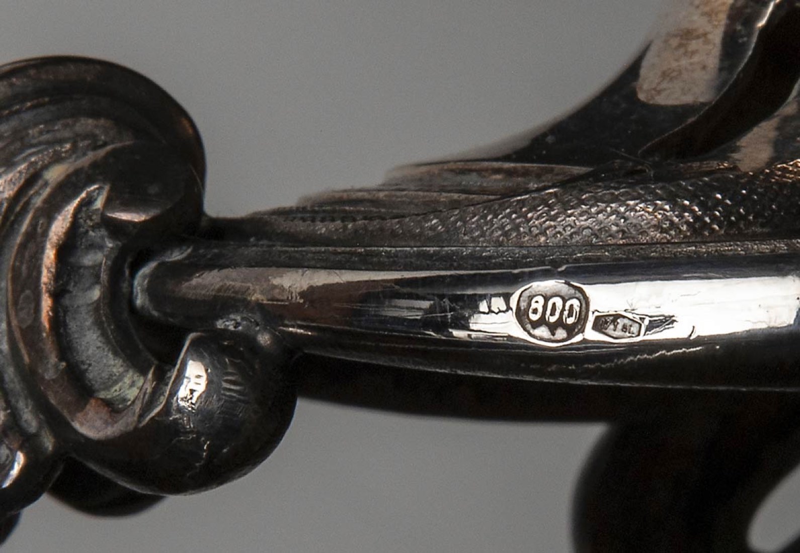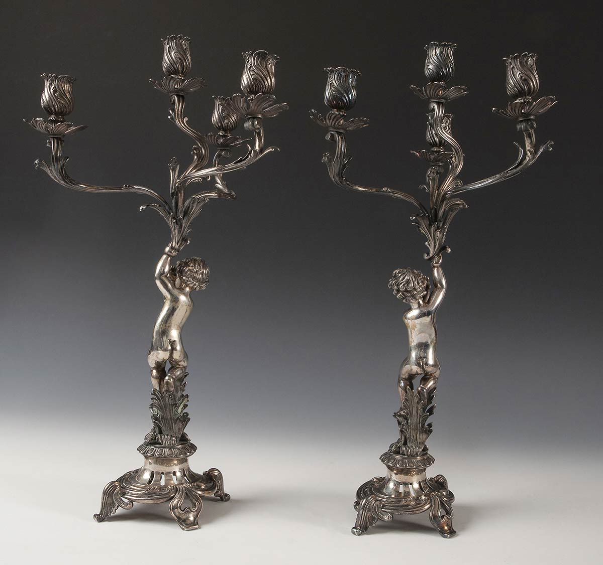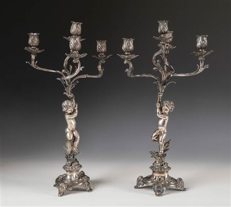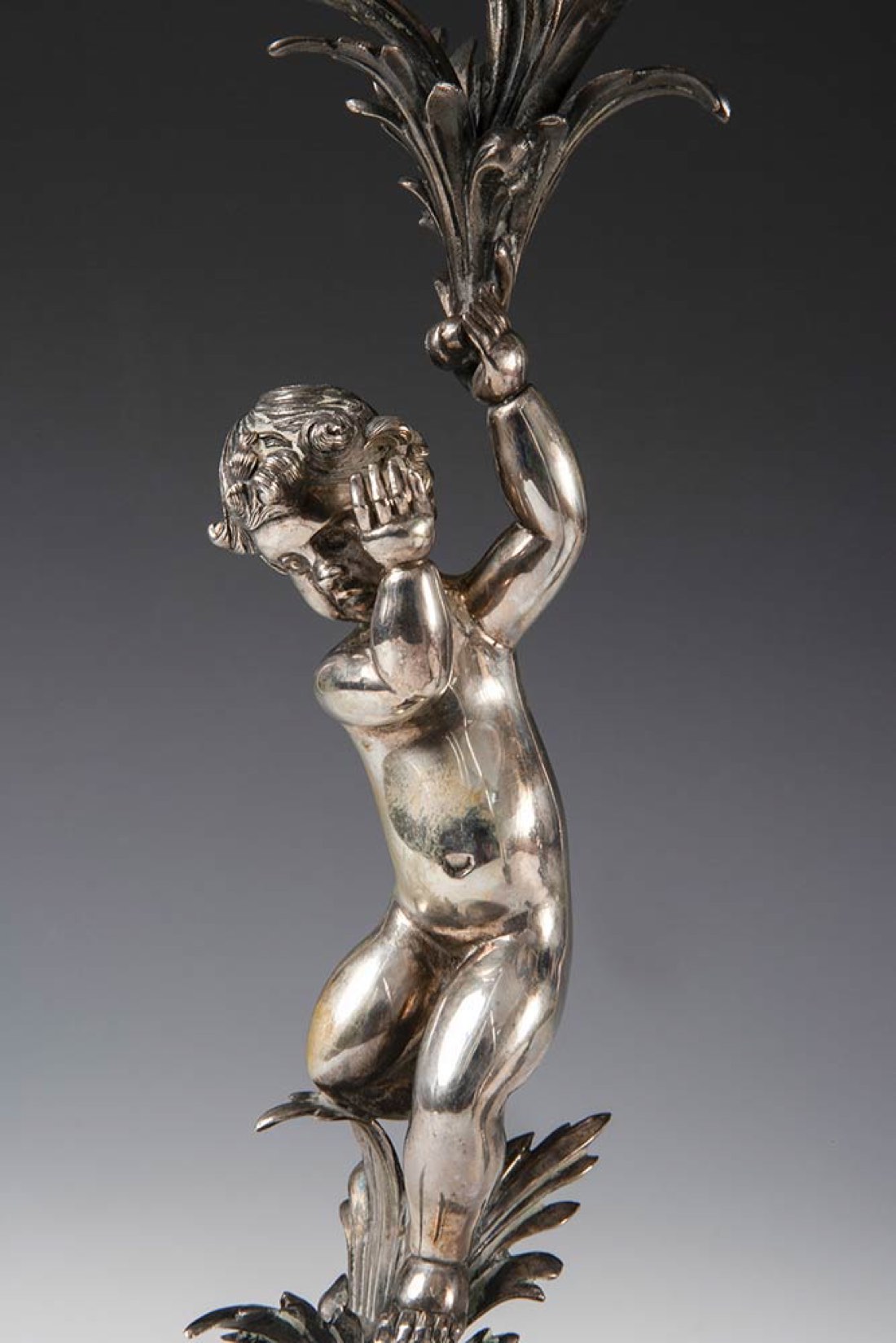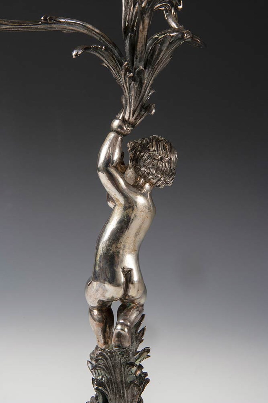 a quattro fiamme, in stile Rococò con fusto a forma di putto. Argento 800/1000, punzonati "800"e "971 AL", argentiere Enrico Goretta.