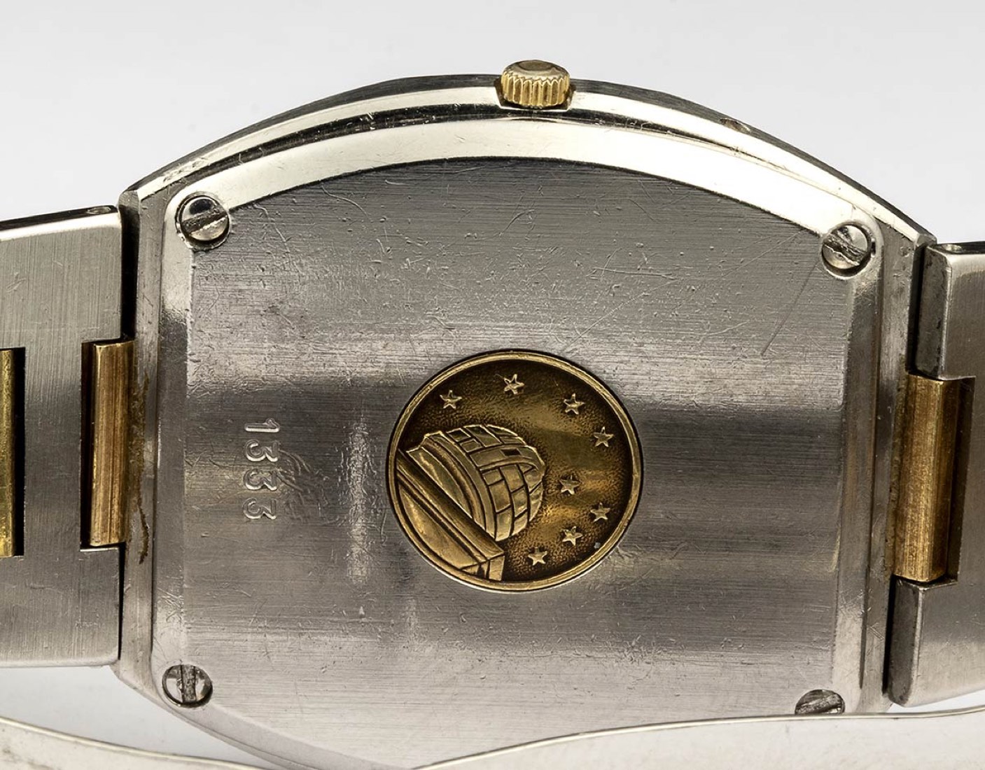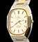 quadrante dorato con indici applicati a bastone e datario. Cassa e bracciale in oro giallo 18k e acciaio con chiusura déployante a scomparsa. Movimento al quarzo. Dimensione cassa 33 x 37 mm, lunghezza 18 cm.