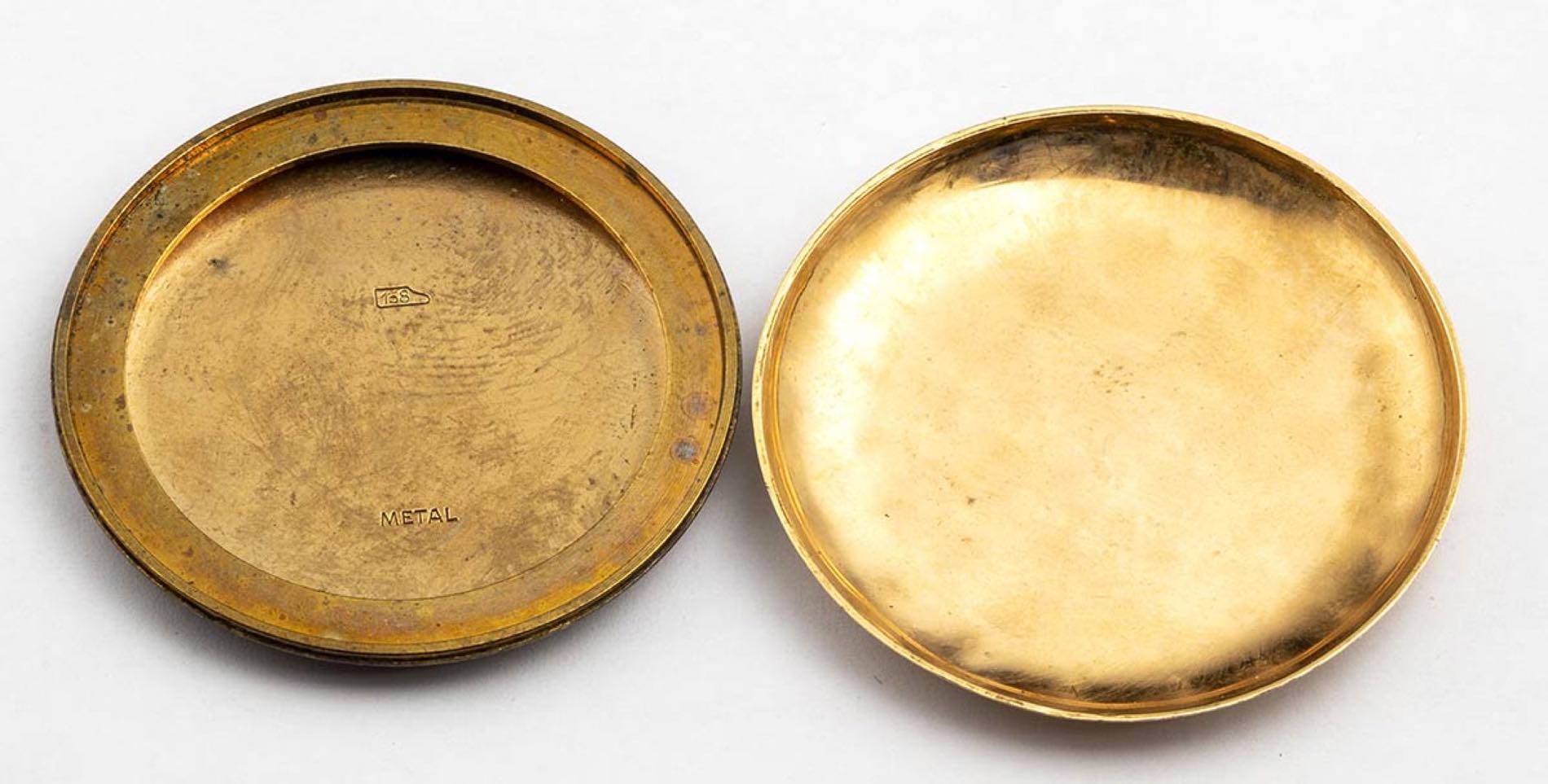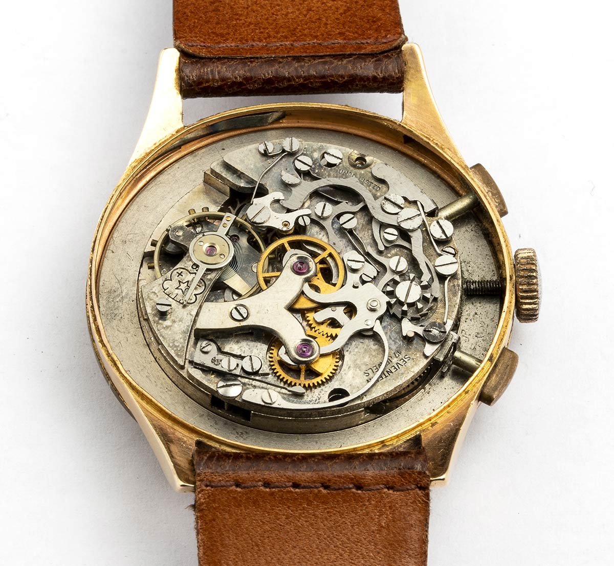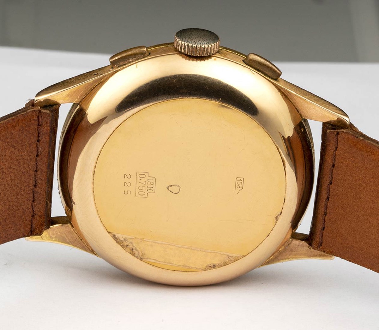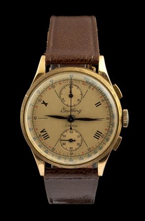 cassa in metallo e oro rosa 18k, quadrante ristampato champagne con numeri romani, movimento a carica manuale. Referenza 47BF648, numero seriale cassa 671220050. Cinturino in pelle. Diametro cassa 35 mm. Stato di conservazione: *** discreto.