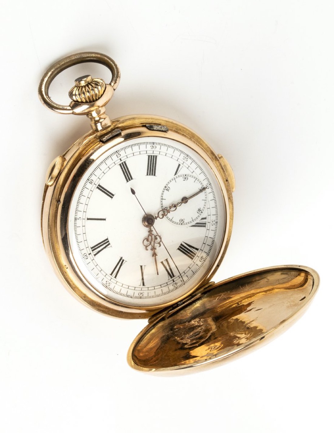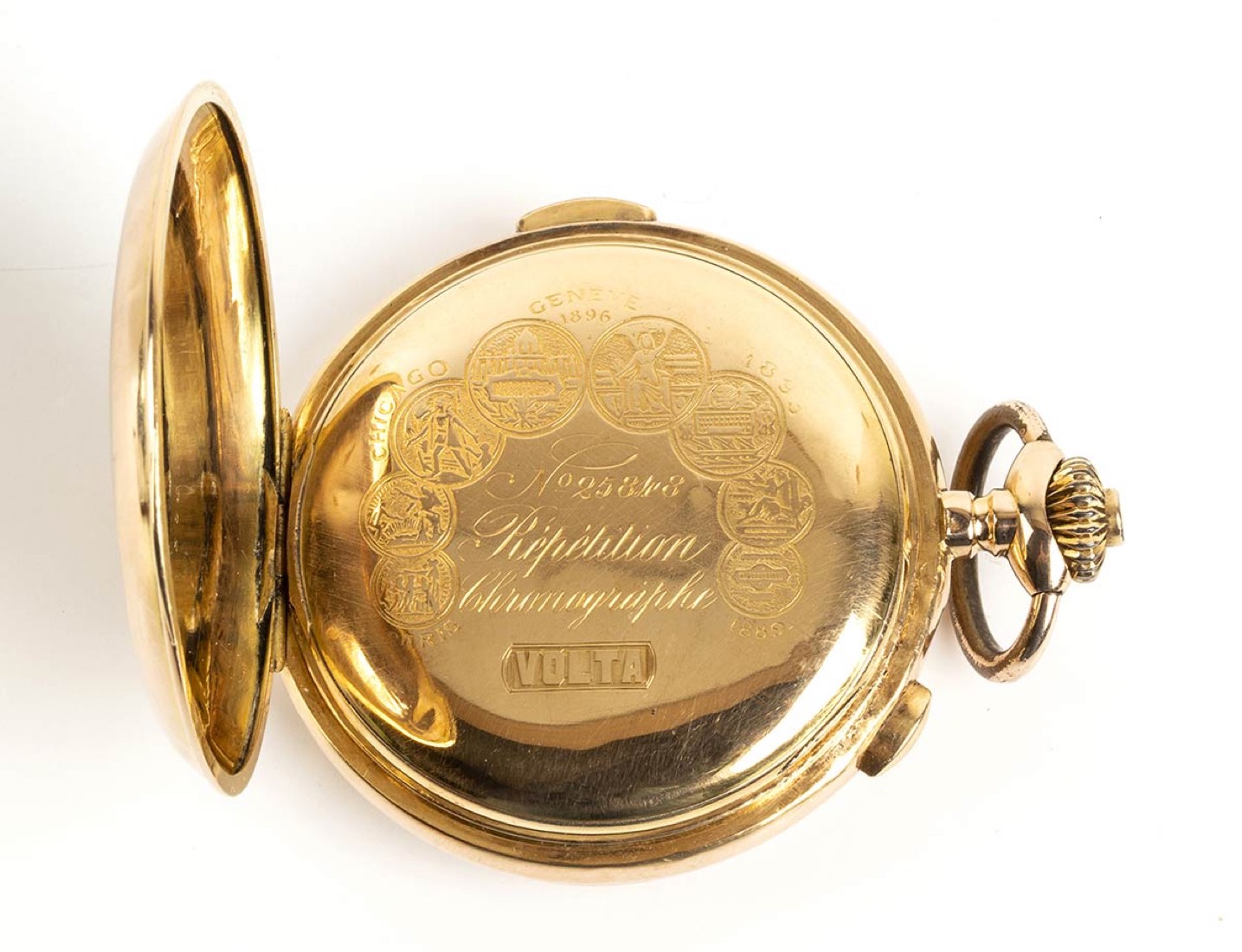 Orologio da tasca VOLTA Cronografo in oro con ripetizione ore quarti al passaggio e richiesta, 1910 circa