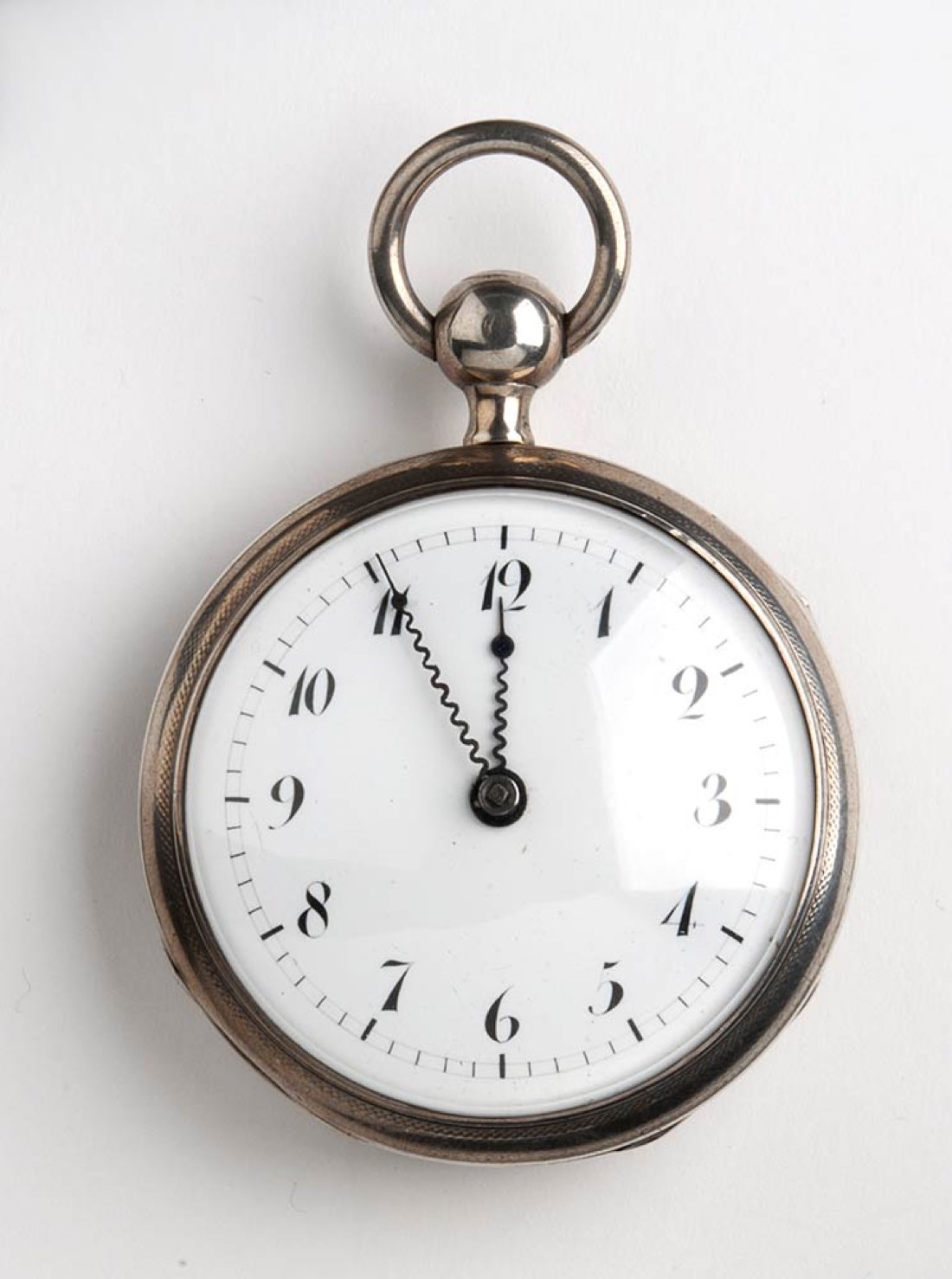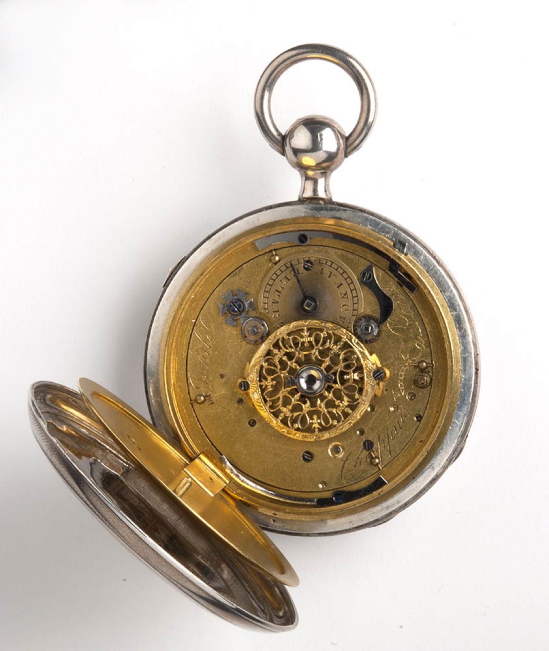 cassa decorata a guilloché, quadrante in smalto bianco con numeri arabi, attivazione della ripetizione mediante pressione del pendente. Movimento a verga con rimessa dell'ora e carica a chiave. Cassa nr. 6636. Diametro 52 mm. Punzonato con marchi in uso a Parigi dal 1819 al 1838 e Jubile Chappuis. Stato di conservazione: **** buono, funzionante.