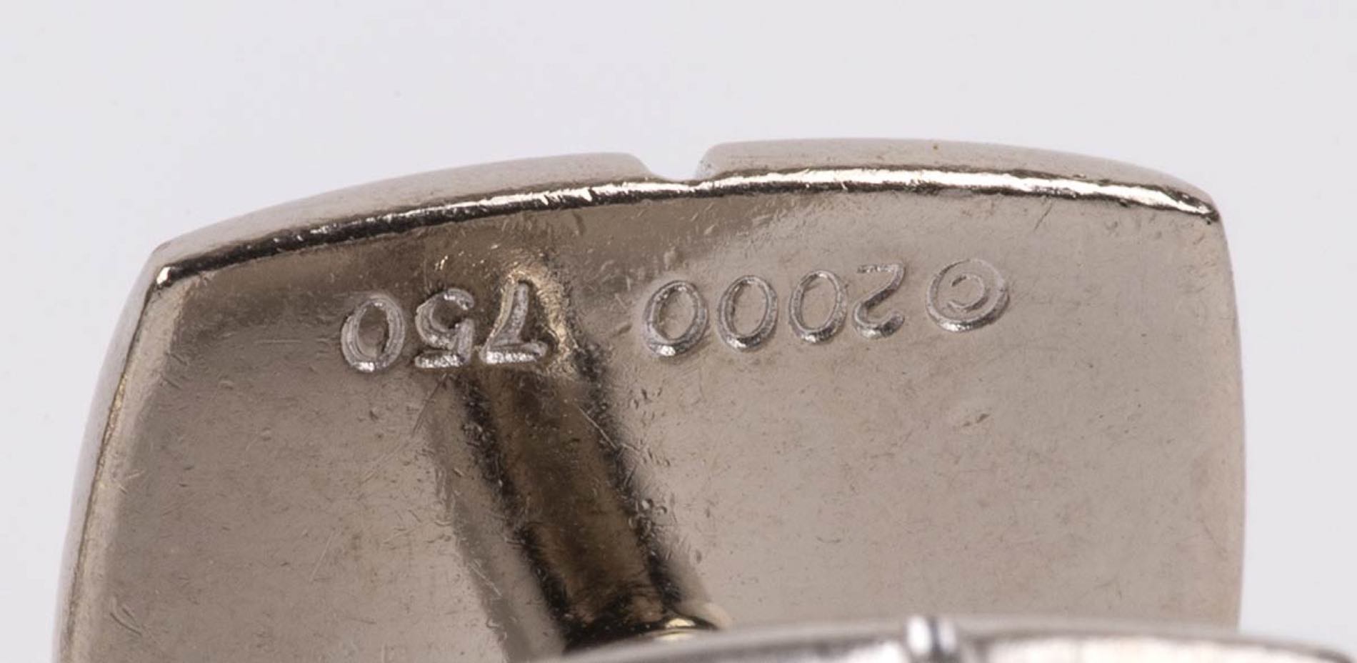 oro bianco 18k, prodotti da TIFFANY & Co, collezione "Streamerica" degli anni 2000. Dimensioni fronte 13 x 13 mm. Punzonati "750", "TIFFANY & CO."e " 2000". Peso 19 gr. Stato di conservazione: **** buono.