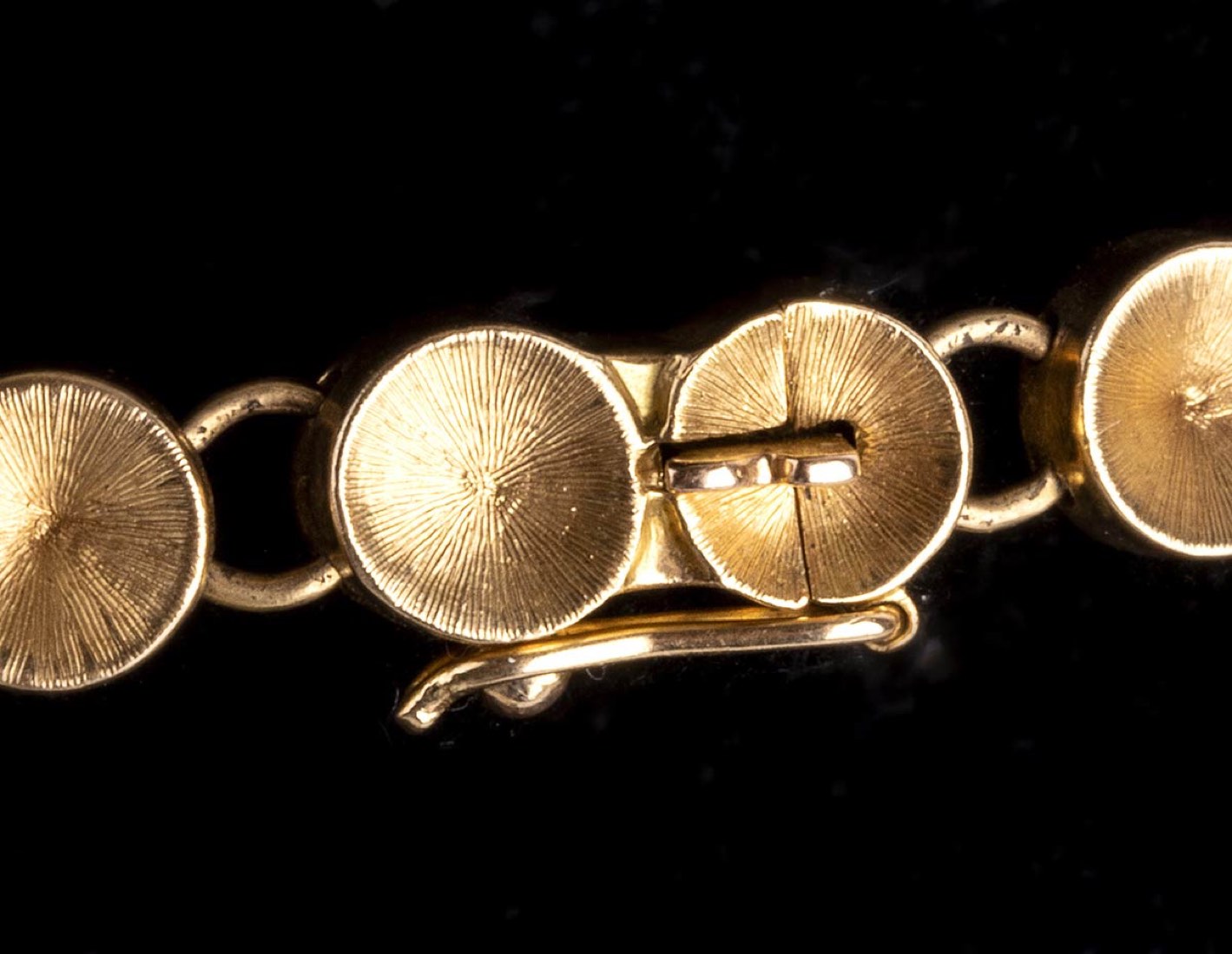 a motivi geometrici in oro giallo 18k. Punzonato "750" e "363 MI". Lunghezza 42,5 cm. Peso 58,6 gr. Stato conservazione: **** buono.
