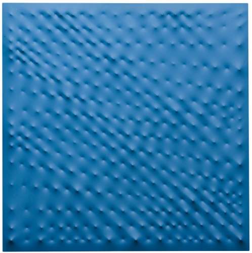 ENRICO CASTELLANI N. 1930 SUPERFICIE BLU acrylic on shaped canvas, executed in 1995 firmato, intitolato e datato 1995 sul retro acrilico su tela estroflessa cm 100x100 Eseguito nel 1995 Opera registrata presso l'Archivio Castellani, Milano con il n. 95-018 PROVENANCE Collezione Plinio De Martiis, Roma Ivi acquistato dall'attuale proprietario nel 1998 LETTERATURA R. Wirz e F. Sardella, Enrico Castellani, Catalogo ragionato. Tomo secondo, Opere 1955-2005, Milano 2012, pag. 533, n. 804, illustrato