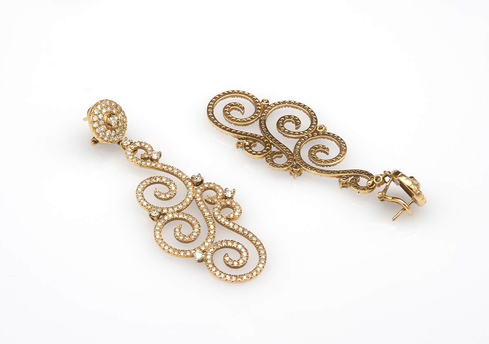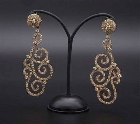 in oro rosa 18k con diamanti taglio brillante 5,00 ct ca., G-H, VS-SI. Punzonato "750". Dimensioni 72 x 27 mm. Peso 19,5 gr. Stato di conservazione: ***** eccellente.
