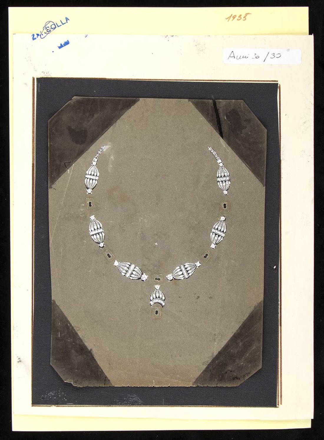 Progetto per collier, anni '30, GIULIO ZANCOLLA disegnatore ed orafo per BULGARI dal 1933 al 1940