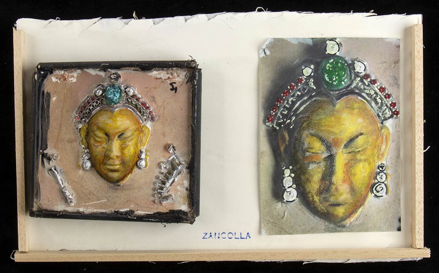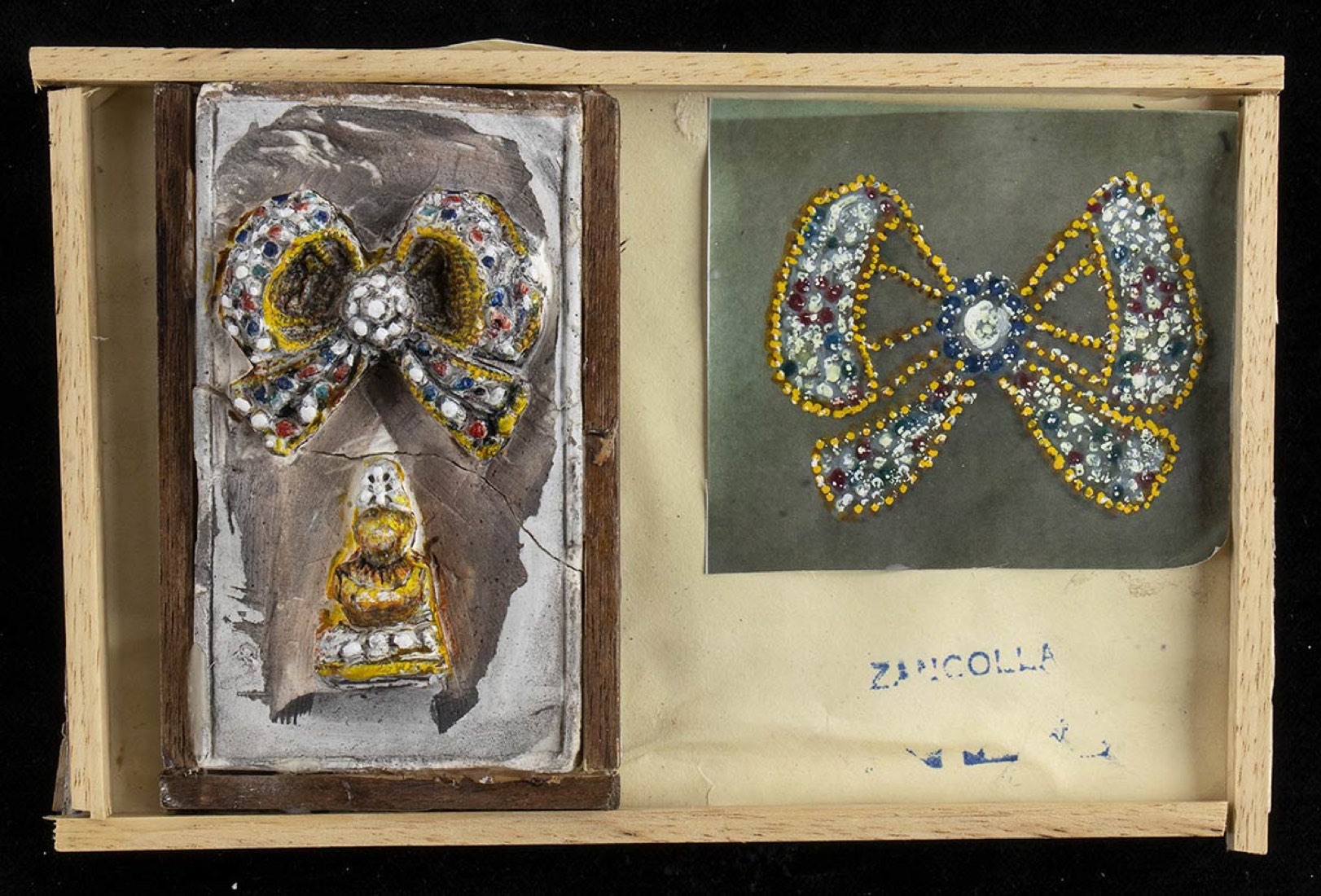 disegni e calchi in gesso per spille e pendente, anni '50-'60. Tecniche miste su velina applicate su foglio. Stato di conservazione: **** buono.