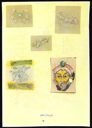 Progetti per spille e pendente, anni '50-'60, GIULIO ZANCOLLA disegnatore ed orafo per BULGARI dal 1933 al 1940