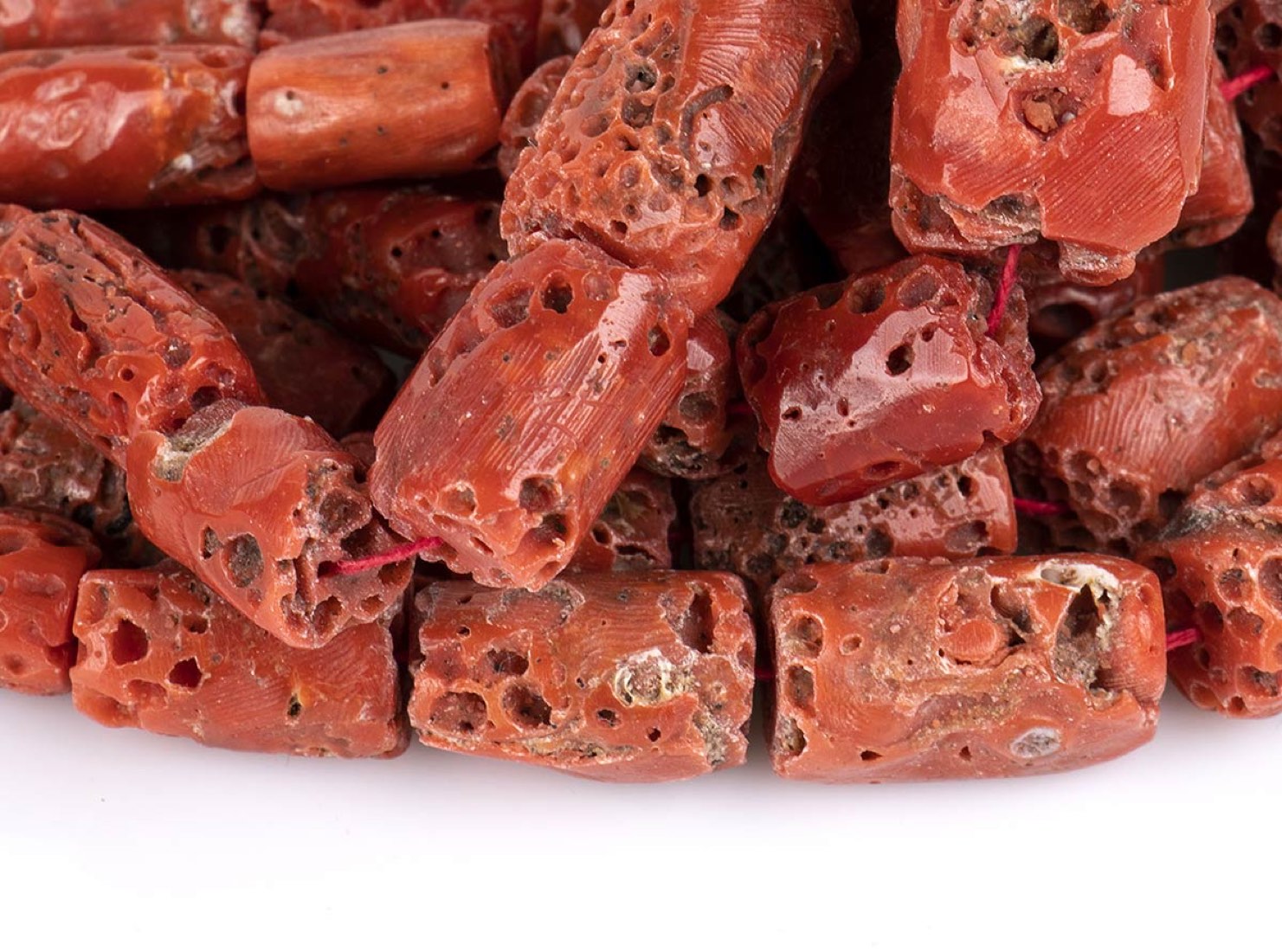 Lotto di 8 fili slegati di corallo Mediteranneo