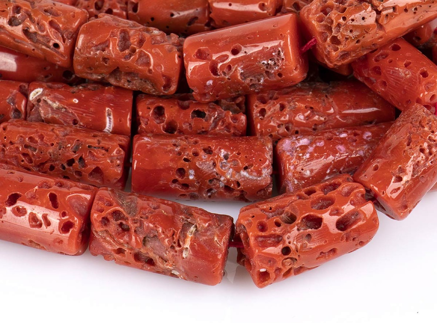 Lotto di 7 fili slegati di corallo Mediteranneo