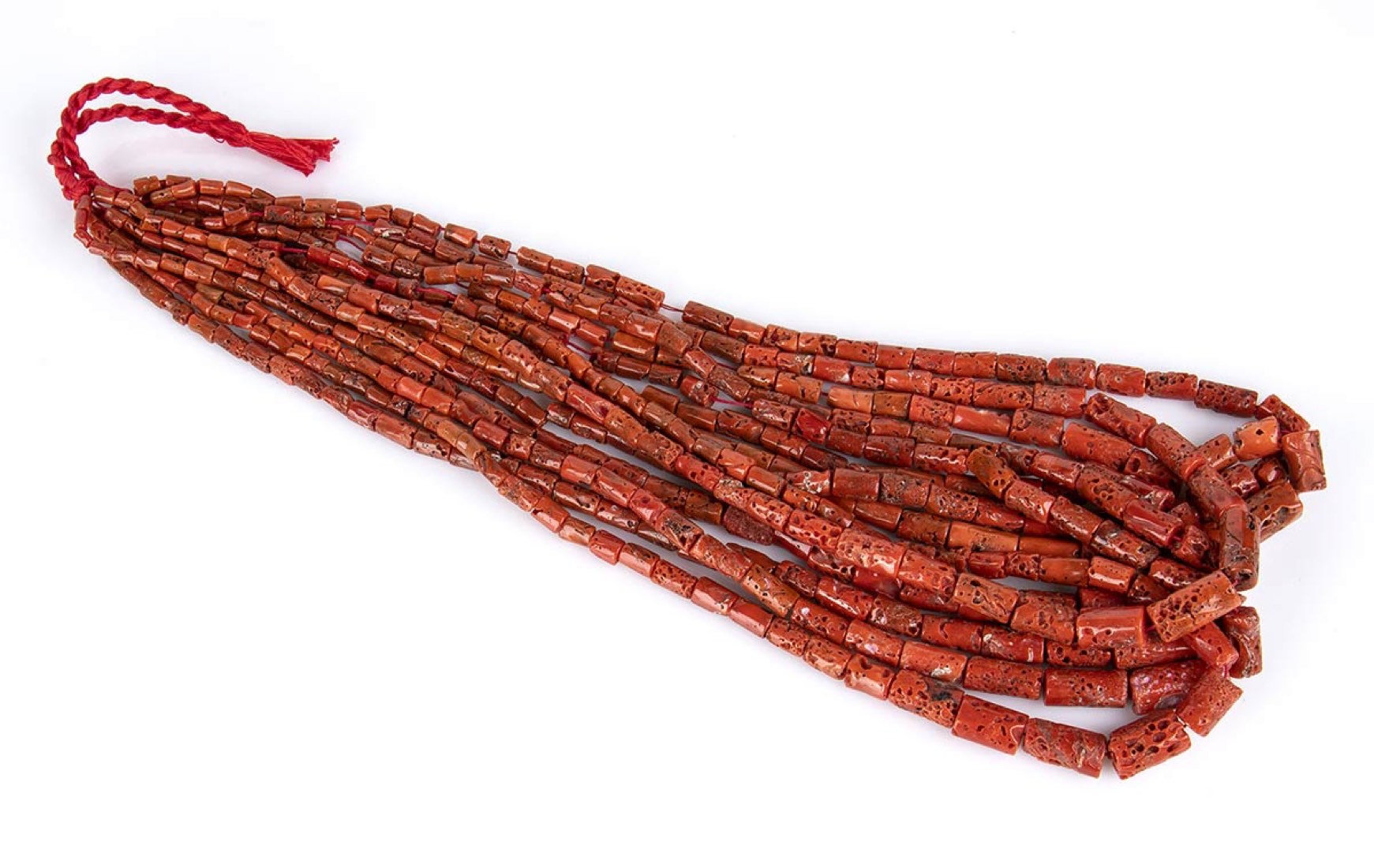 barilotti di corallo Mediterraneo (corallium rubrum). Diametro 11-10,5-6,5-4,5 mm, lunghezza 65 cm. Peso totale 308 gr. Stato di conservazione: ***** eccellente.