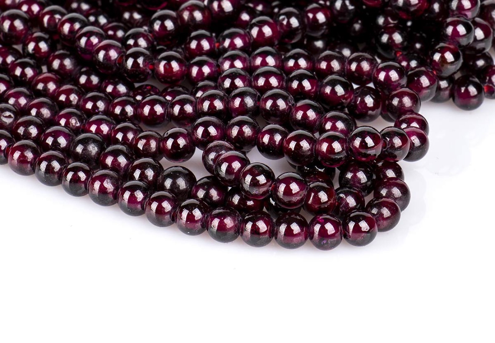 circa 10 fili di sfere di granato. Diametro 4-5 mm, lunghezza 40 cm. Peso totale 267 gr. Stato di conservazione: ***** eccellente.