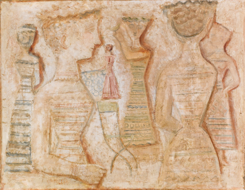 MASSIMO CAMPIGLI 1895 - 1971 SENZA TITOLO signed and dated 1944, oil on canvas firmato e datato 1944 olio su tela cm 66x84 Opera registrata presso l'Archivio Campigli, Saint Tropez, con il numero 56372183 L'opera è accompagnata da certificato su fotografia rilasciato dall'Archivio Campigli, Saint Tropez PROVENANCE Collezione Mario Luzzatto, Roma Ivi acquisito dagli attuali proprietari