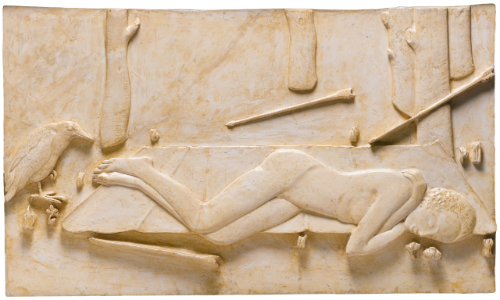 FELICE CASORATI 1883 - 1963 LA DORMIENTE chalk. Executed in 1924 gesso cm 86x144x11 Eseguito nel 1924 PROVENANCE Collezione dell'artista Collezione privata, Torino Ivi acquistato dalla famiglia dell'attuale proprietario EXHIBITED Torino, Fondazione CRT, Lionello Venturi e la pittura a Torino 1919-1931, 2000, tav. 90 LETTERATURA G. Bertolino, F. Poli, Catalogo Generale delle opere di Felice Casorati. Le sculture e l'aggiornamento dipinti, Torino 2004, pag. 69, n. 29SC, illustrato NOTA DEL CATALOGO Eseguito nel 1924, La dormiente è parte di una vasta decorazione realizzata da Felice Casorati per il Teatrino privato di Casa Gualino; la decorazione è costituita da due statue ai margini del proscenio e da quattordici bassorilievi che fungono da metope.