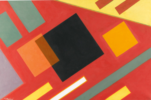 MAURO REGGIANI 1897 - 1980 COMPOSIZIONE signed; signed, inscribed, dedicated to Bruno Giraldi and dated 1963 on the reverse, oil on canvas firmato; firmato, iscritto, dedicato a Bruno Giraldi e datato 1963 sul retro olio su tela cm 54x83 PROVENANCE Galleria Bruno Giraldi, Livorno Collezione Clemente Bersacchi, Livorno Ivi acquistato dall'attuale proprietario EXHIBITED Firenze, Palazzo Strozzi, Mostra Mercato Nazionale d'Arte Contemporanea, Firenze 1963, n. 7 LETTERATURA L. Caramel, Reggiani - Catalogo generale delle pitture, Milano 1990, pag. 190, n. 1963.26 illustrato