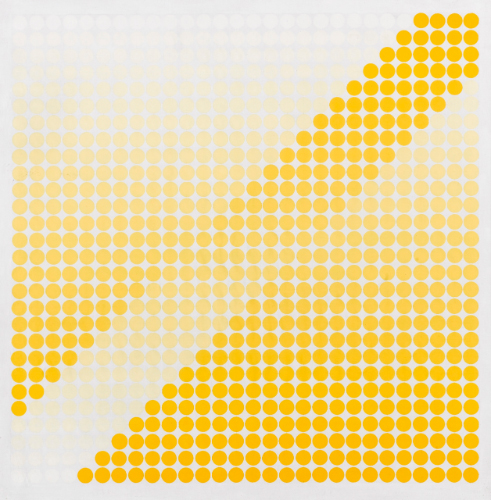 DADAMAINO 1935-2004 BIANCO + GIALLO signed, titled and dated 71/73 on the reverse, oil on board firmato, intitolato e datato 71/73 sul retro olio su masonite cm 40x40 Opera in corso di archiviazione presso l'Archivio Opera Dadamaino, Somma Lombardo (MI) PROVENANCE Collezione Lea Vergine, Milano (acquisito direttamente dall'artista)