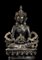 Seduto su base a fiore di loto con le gambe incrociate nella posizione padmasana, i palmi delle mani sovrapposti a tenere l'urna, adornata di gioielli tra cui tiara a cinque pinnacoli, intorno alle braccia gli svolazzi di una sciarpa.