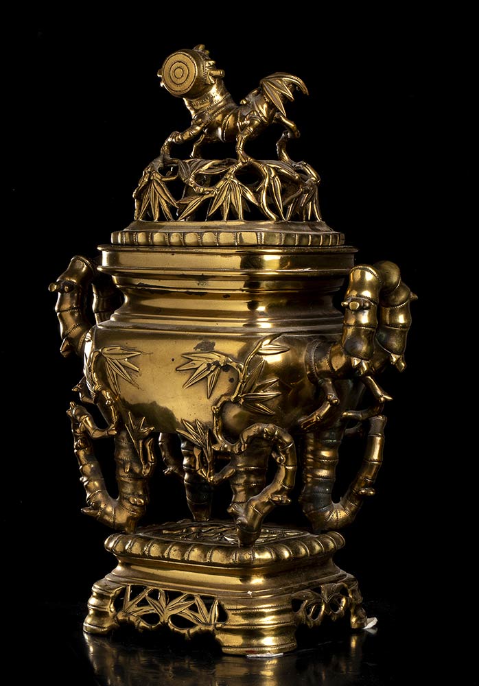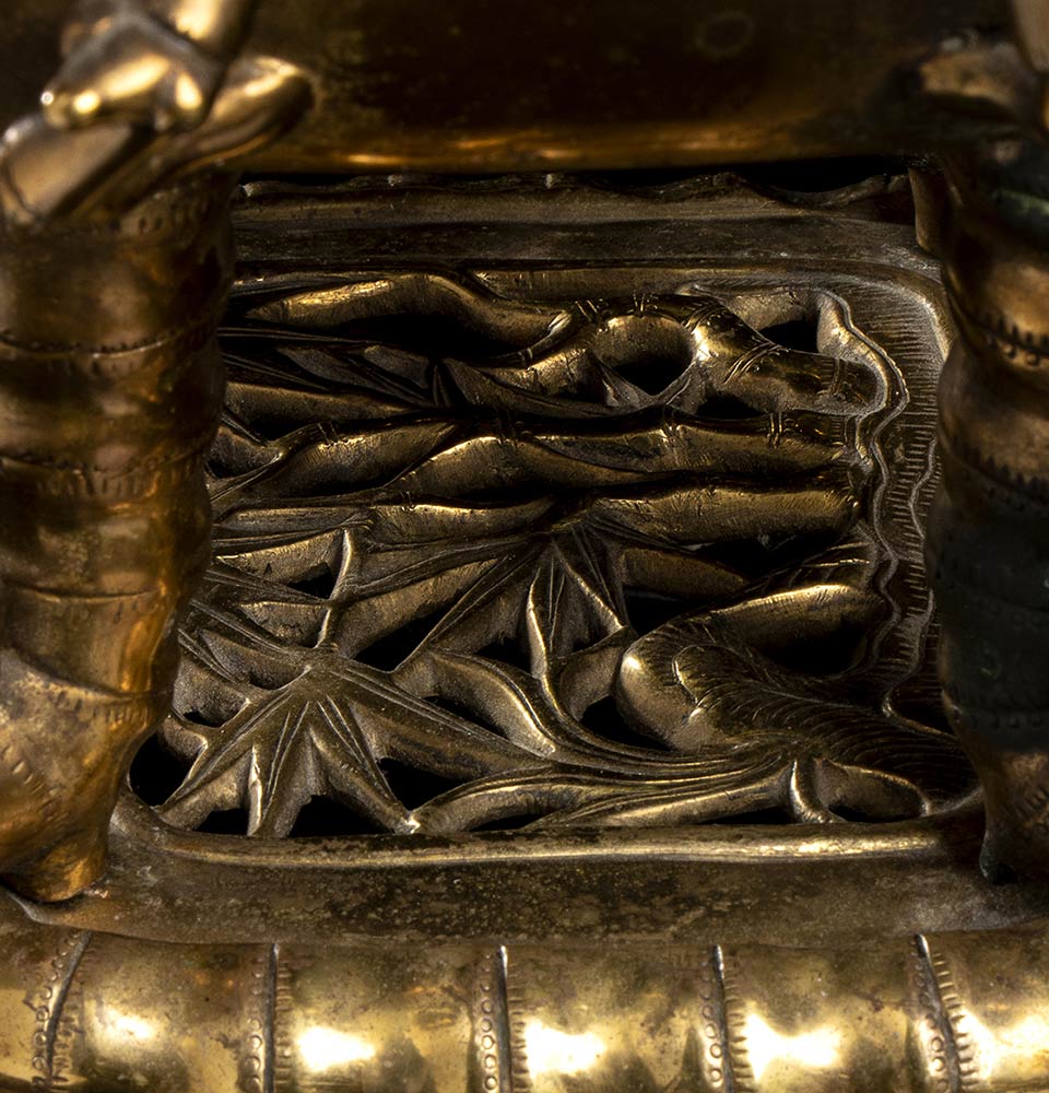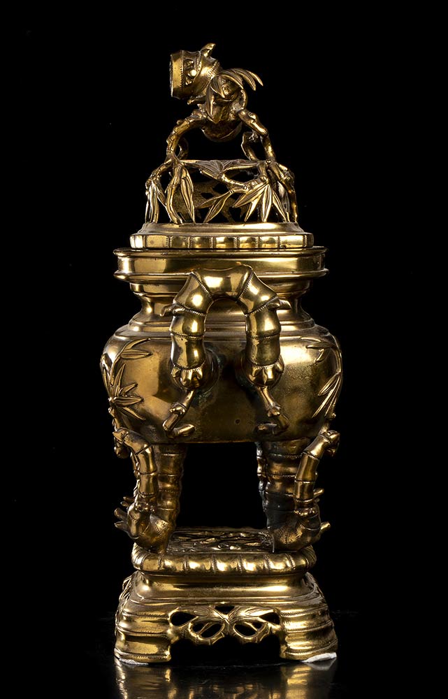 GRANDE INCENSIERE IN METALLO DORATO Cina, XX secolo