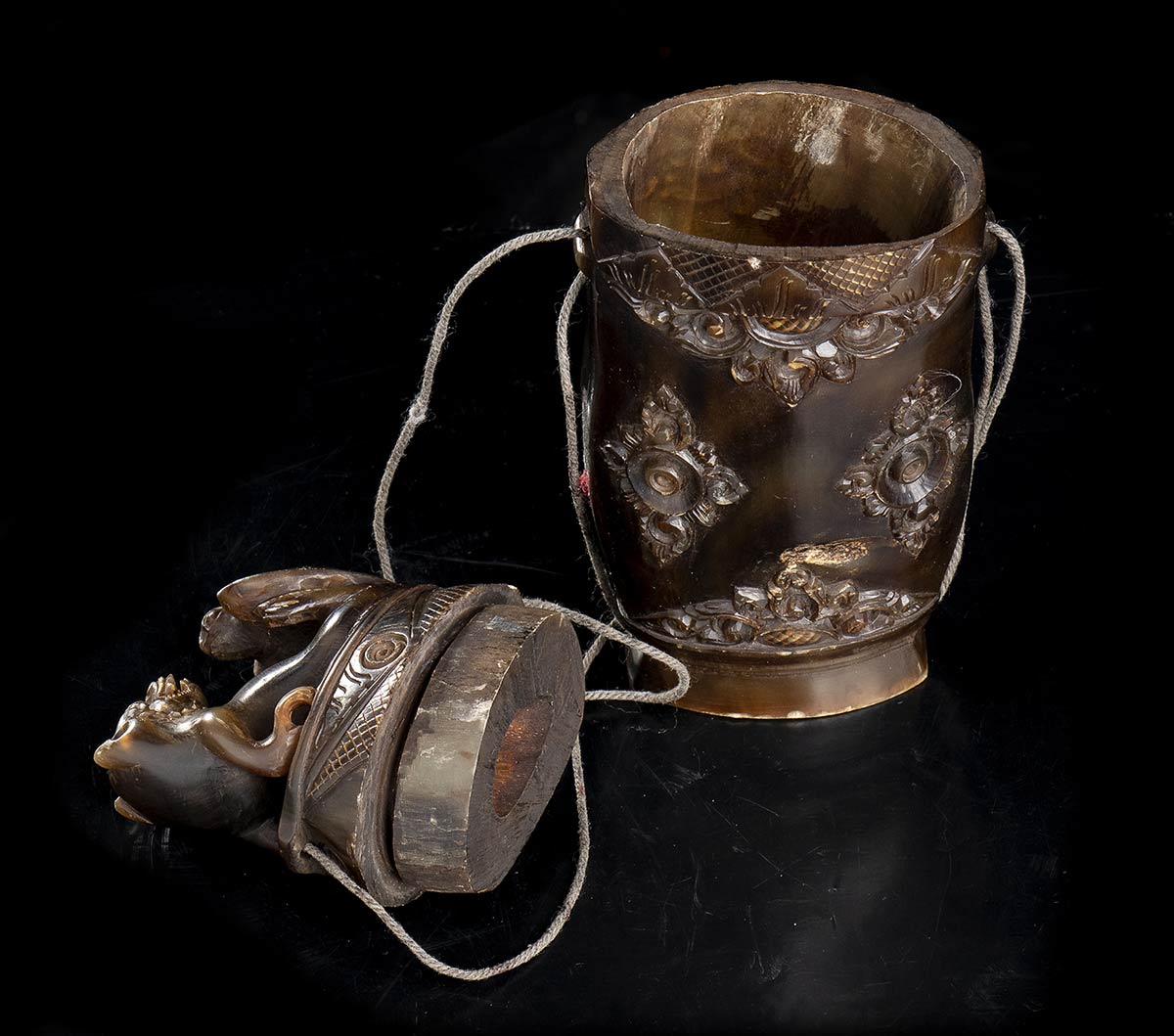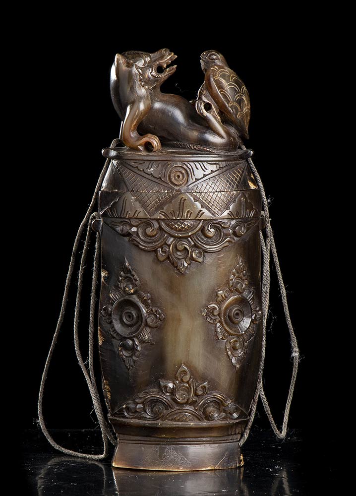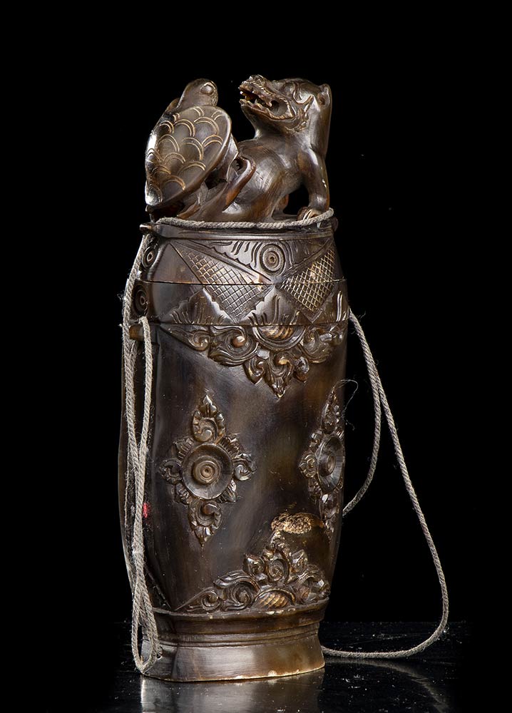 CONTENITORE CON COPERCHIO IN CORNO Cina, XX secolo