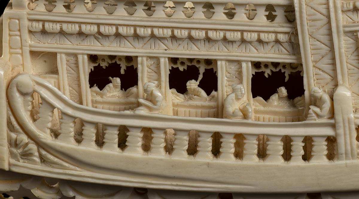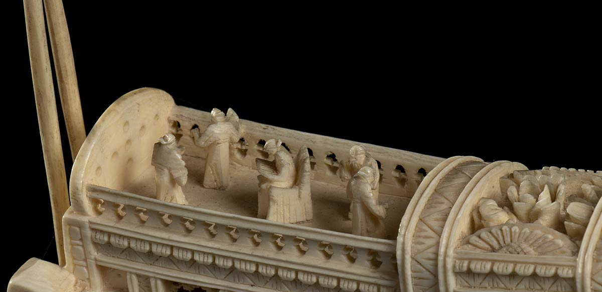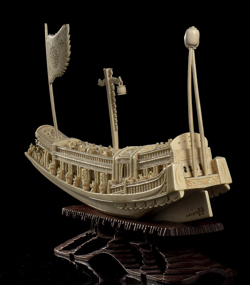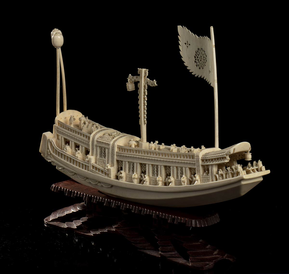 MODELLINO DI NAVE CON FIGURE IN AVORIO Cina, inizio del XX secolo
