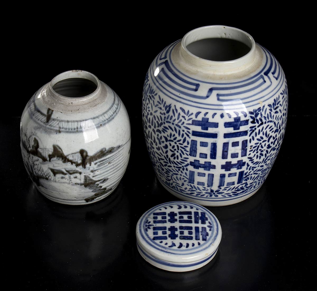 DUE VASI IN PORCELLANA 'BIANCO E BLU', UNO CON COPERCHIO