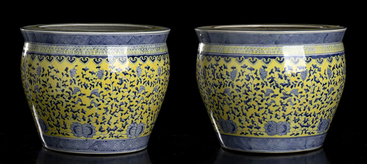COPPIA DI CACHEPOTS IN PORCELLANA POLICROMA Cina, XX secolo