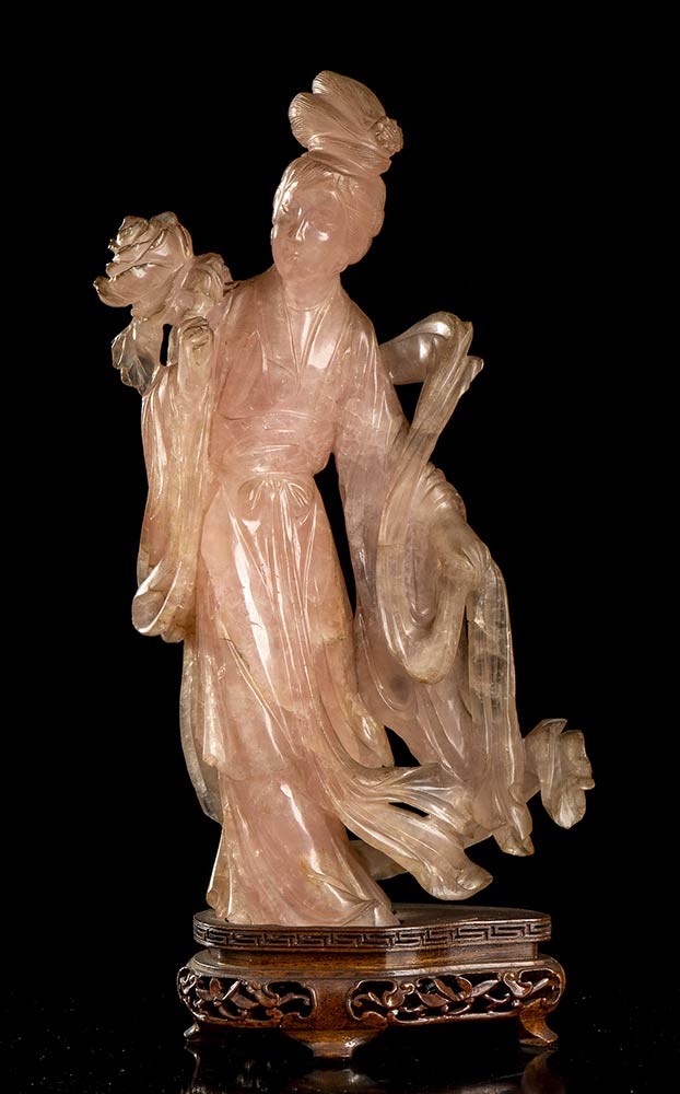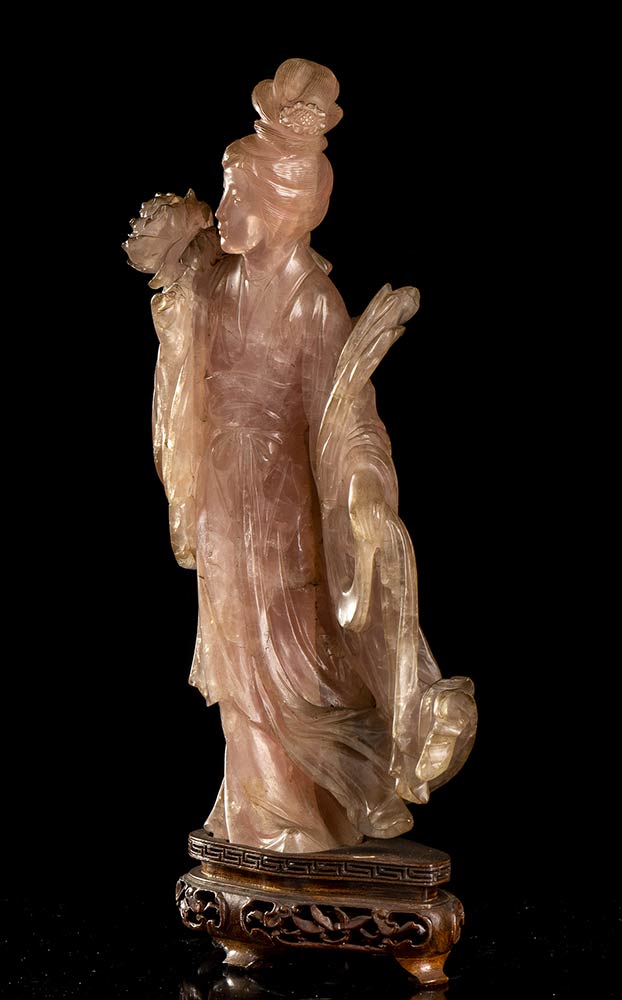 Lotto 119 | FIGURA FEMMINILE IN QUARZO ROSA Cina, XX secolo