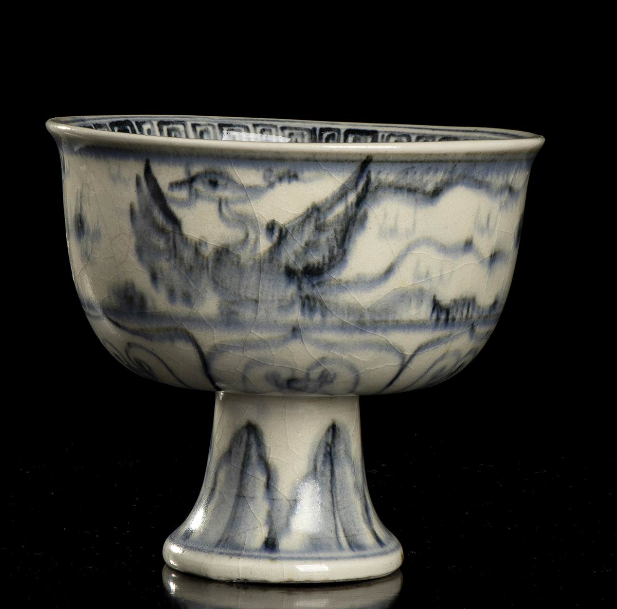 COPPA A STELO IN PORCELLANA 'BIANCO E BLU' Vietnam, XV-XVI secolo