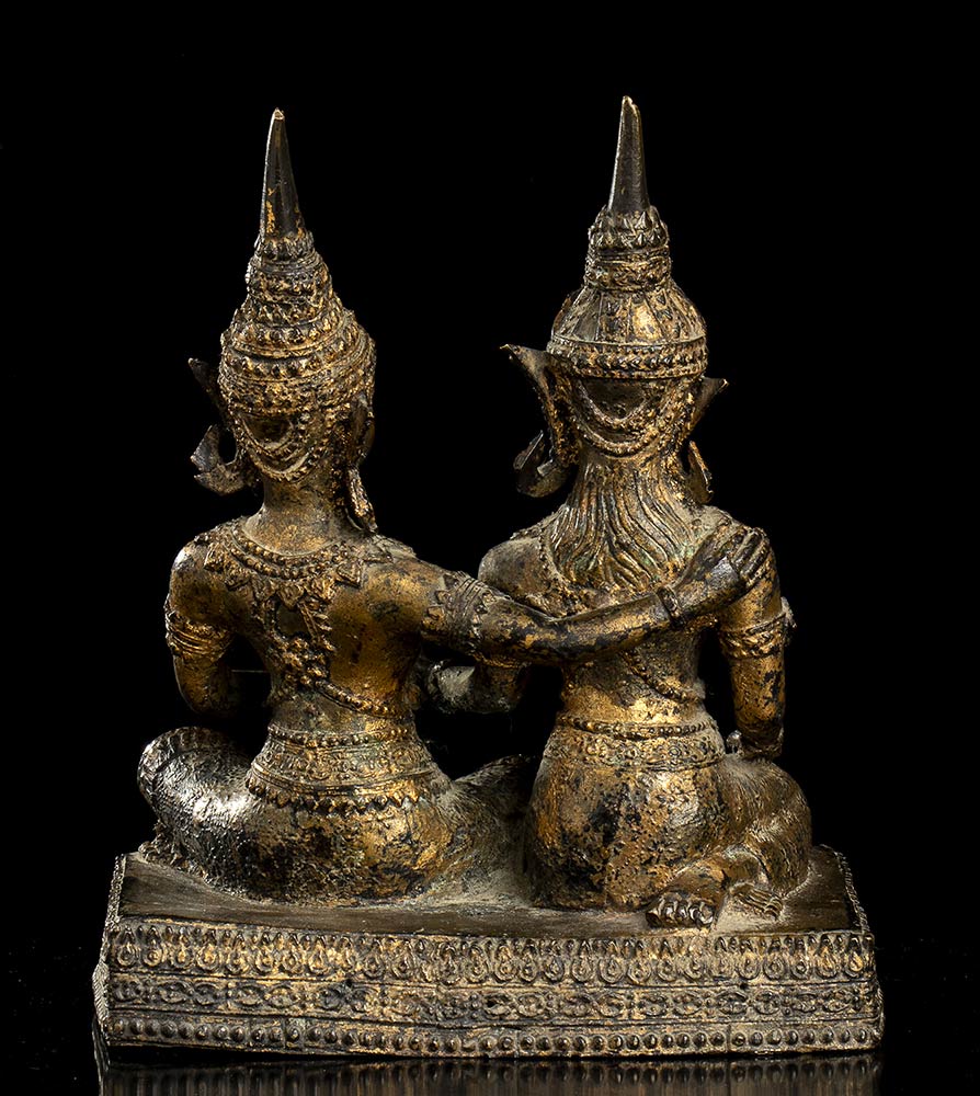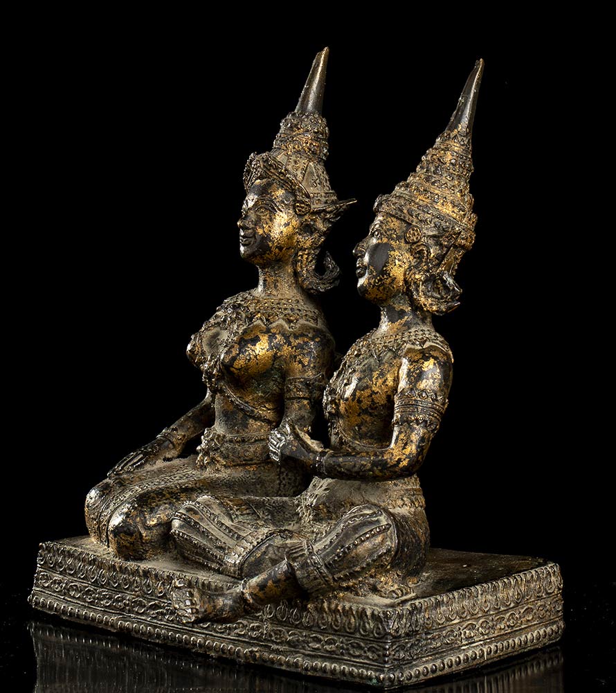 GRUPPO CON DUE DIVINITÀ IN BRONZO DORATO Thailandia, XIX-XX secolo
