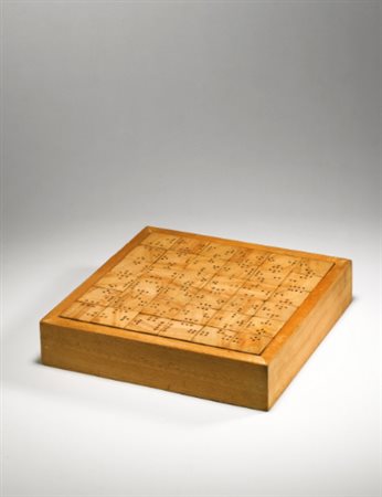 ALIGHIERO BOETTI 1940 - 1994 DAMA signed and numbered 3/10 on the reverse, stamped wood. Executed in 1968 firmato e numerato 3/10 sul retro legno punzonato cm 5x25x25 Eseguito nel 1968 PROVENANCE Galleria Notizie, Torino Collezione privata, Novara Ivi acquistato dall'attuale proprietario LETTERATURA J.Ch. Ammann, Alighiero Boetti - catalogo generale, Milano 2009, vol I, pag. 209, n. 217 illustrato a colori