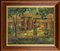 DIPINTO A COLORI SU TELA CON SCENA DI VILLAGGIO CON FIGURE E CANE