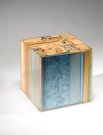 ALIGHIERO BOETTI 1940 - 1994 CUBO wood, rubber, paper, paperboard, carton, wavy carton, sage, polystyrene, plexiglass, aluminium and enamel in plexiglass. Executed in 1968 in edition of 10 legno, gomma, carta, cartoncino, cartone, cartone ondulato, saggina, polistirolo, plexiglass, alluminio e smalto entro plexiglass cm 22x22x22 Eseguito nel 1968 in 10 esemplari PROVENANCE Galleria Notizie, Torino Collezione privata, Novara Ivi acquistato dall'attuale proprietario LETTERATURA J.Ch. Ammann, Alighiero Boetti - catalogo generale, Milano 2009, vol I, pagg. 220-221, n. 235 a.3404 illustrato a colori