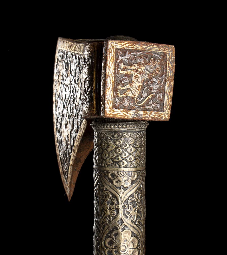ASCIA IN LEGNO E METALLO, TABAR Iran, XIX-XX secolo