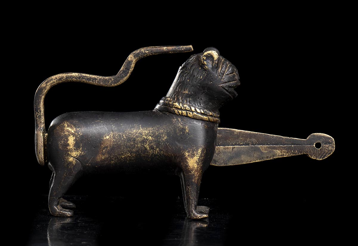 LUCCHETTO CON CHIAVE IN OTTONE A FORMA DI LEONE Iran, XVIII secolo