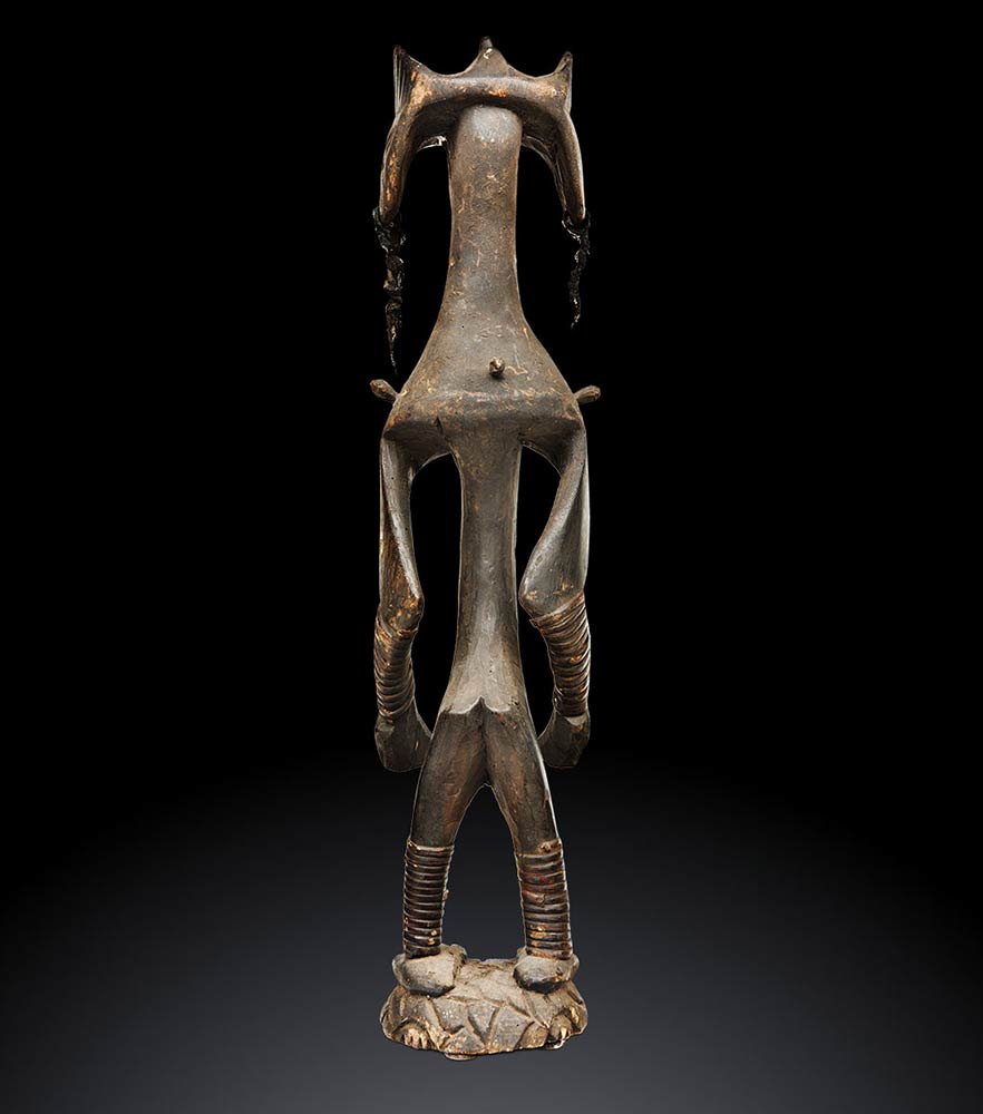 L'arte dei Mumuye è stata 'scoperta' relativamente tardi, intorno alla fine degli anni Sessanta del Novecento. Sculture come questa erano utilizzate per la divinazione e la medicina. Nei villaggi se ne conservavano sia in luoghi comuni destinati all'iniziazione degli adolescenti, sia nelle abitazioni private per ricordare personaggi importanti dell'etnia.