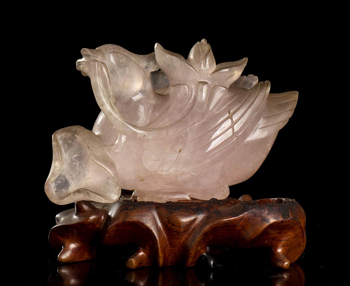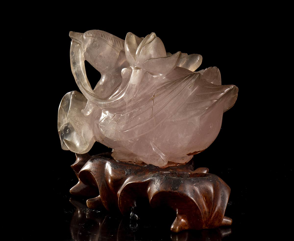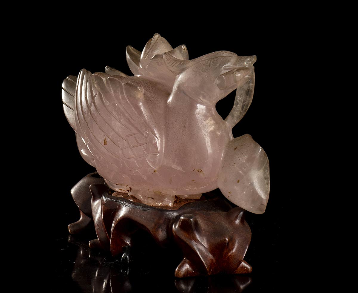 UCCELLO IN QUARZO ROSA Cina, XX secolo