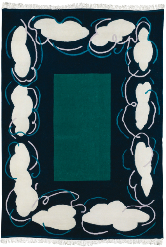 MARIO SCHIFANO 1934 - 1998 CIELO PER TERRA wool carpet. Executed in 1984 from the canvas Particolare del cielo (1963); ed. 6/25 made by Manifattura Bosmann, Rome Tappeto lavorato a mano a nodo senneh in lana vergine cm 261x188 Eseguito nel 1984 dalla tela Particolare del cielo del 1963; esemplare 6/25 realizzato dalla manifattura Bosmann, Roma Opera registrata presso l'Archivio Mario Schifano, Roma, con il numero T00010121012 L'opera è accompagnata da certificato su fotografia rilasciato dall'Archivio Mario Schifano, Roma