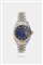Cassa in acciaio con lunetta godronata in oro. Quadrante blu con secondi continui al centro e datario al 3. Bracciale Jubilee integrato in acciaio ed oro con chiusura clasp.