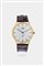 Cassa in oro con fondello a scatto. Quadrante bianco con indici geometrici applicati e secondi continui al 6.