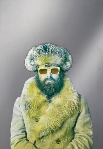 MICHELANGELO PISTOLETTO N. 1933 AUTORITRATTO CON OCCHIALI GIALLI signed and numbered 99/200 on the reverse, silkscreen on polished stainless steel. Executed in 1973 firmato e numerato 99/200 sul retro serigrafia su acciaio inox lucidato a specchio cm 100x70 Eseguito nel 1973
