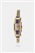 Cassa in oro rosa con fondello a pressione e lunetta decorata con zaffiri sintetici taglio baguette. Quadrante color rame con indici geometrici serigrafati. Bracciale a doppia coda di topo.