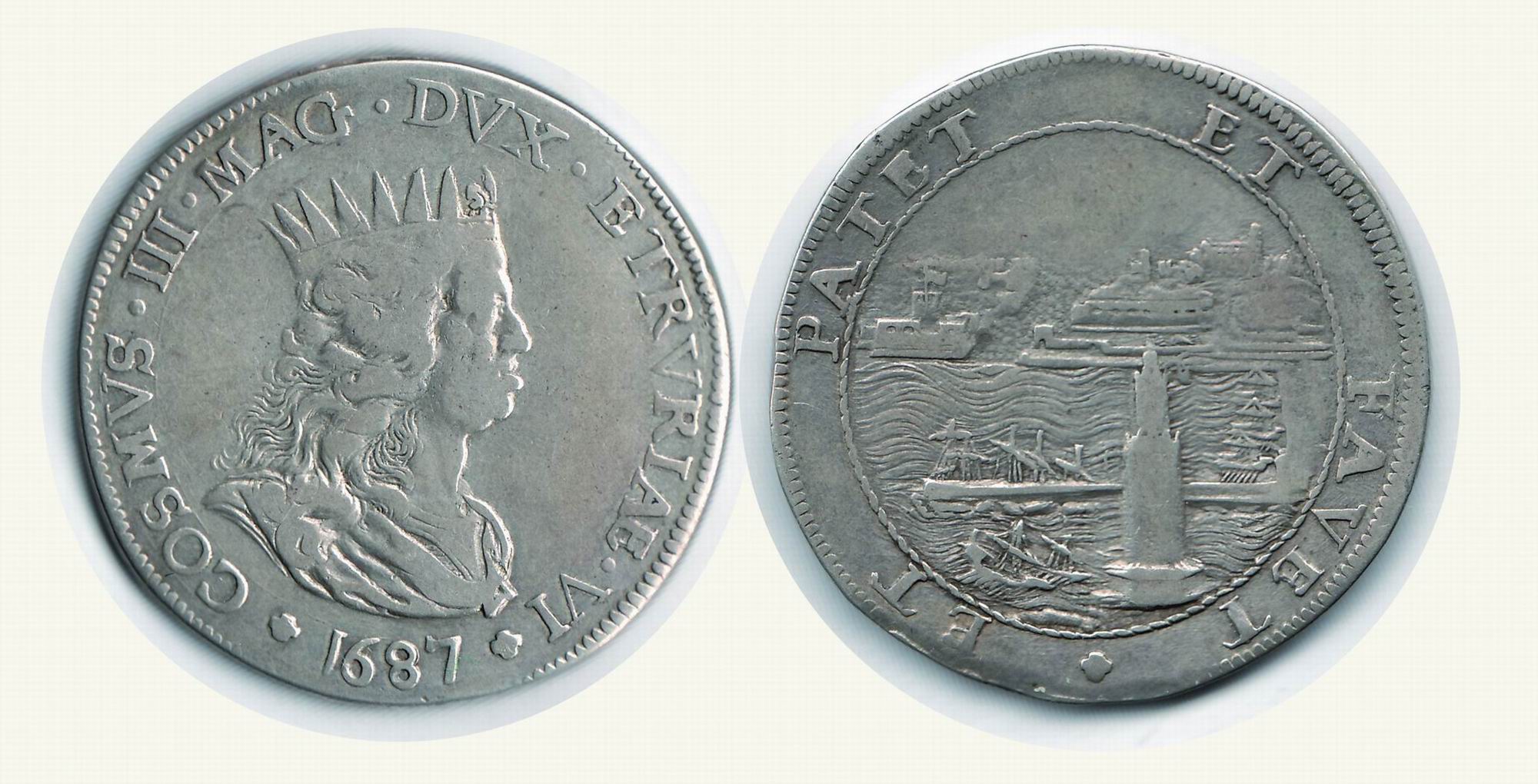 Monete di Città Italiane - LIVORNO - Cosimo III - Tollero 1687 - Porto di Livorno.