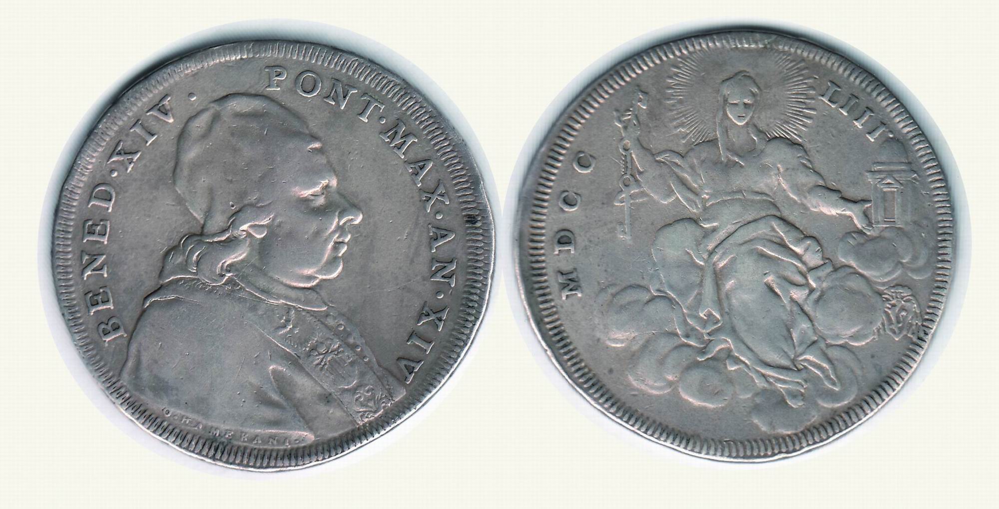 Monete di Città Italiane - ROMA - Benedetto XIV - Scudo A. XIV 1753.