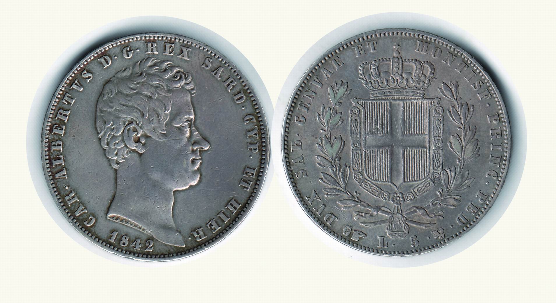 Precedente Lotto 373 Successivo Ghiglione 1885 - Salita San Matteo 19/1, 16123 Genova Numismatica Sessione Unica domenica 5 dicembre 2021 ore 15:00 (UTC +01:00) Monete Decimali - SAVOIA - CARLO ALBERTO - 5 Lire 1842 To. SAVOIA - CARLO ALBERTO - 5 Lire 1842 To. q.SPL