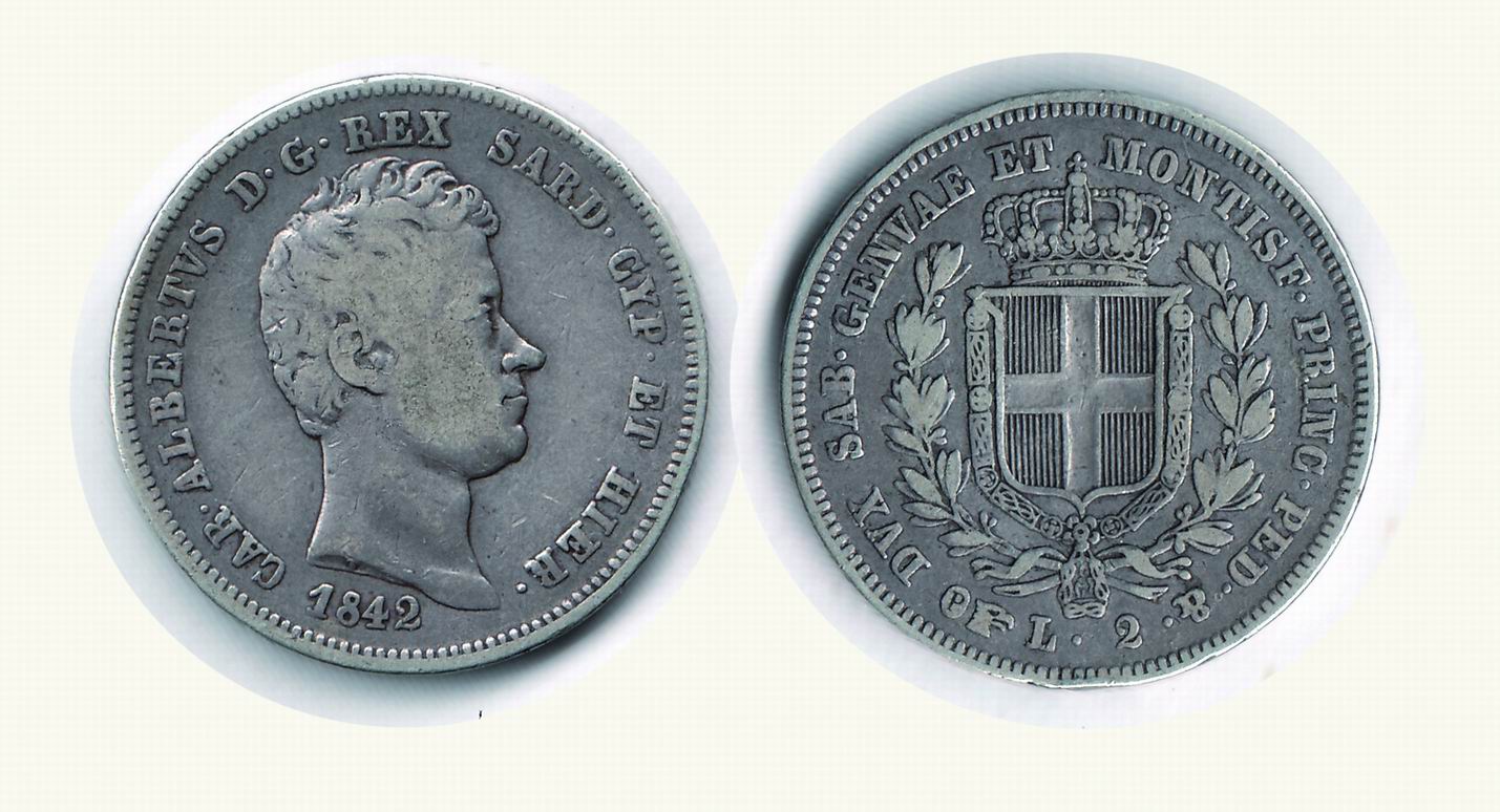 SAVOIA - Carlo Alberto - (1831-1849) - 2 Lire 1842 To. RR MB/BB